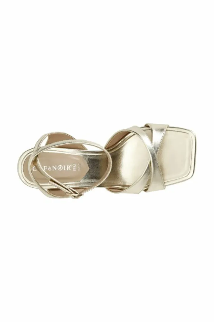Sandali metallizzati con incrocio e laccio alla caviglia. tacco h. 70mm