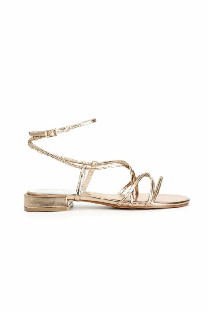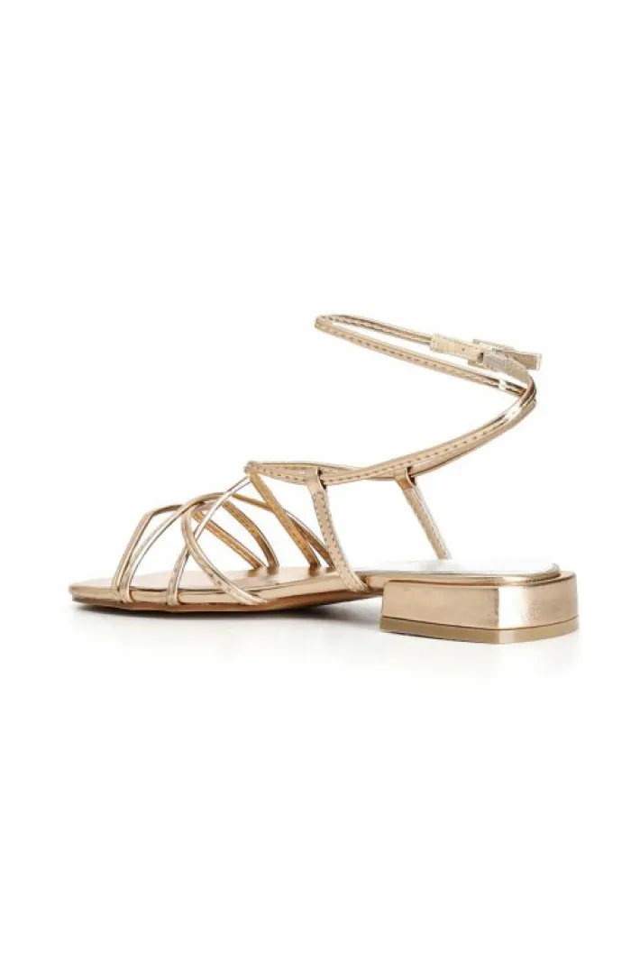 Sandali con multilistini effetto laminato con laccio alla schiava. comodo soletto imbottito per una calzata morbida. tacco alto 20mm. comodi da indossare e facili da abbinare.