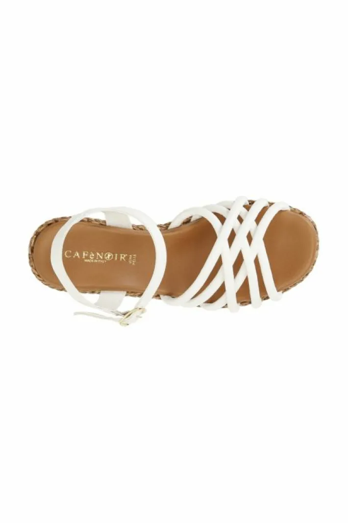 Sandali modello gilda con fascia intrecciata. zeppa fasciata in rafia.