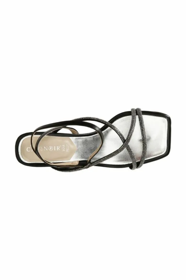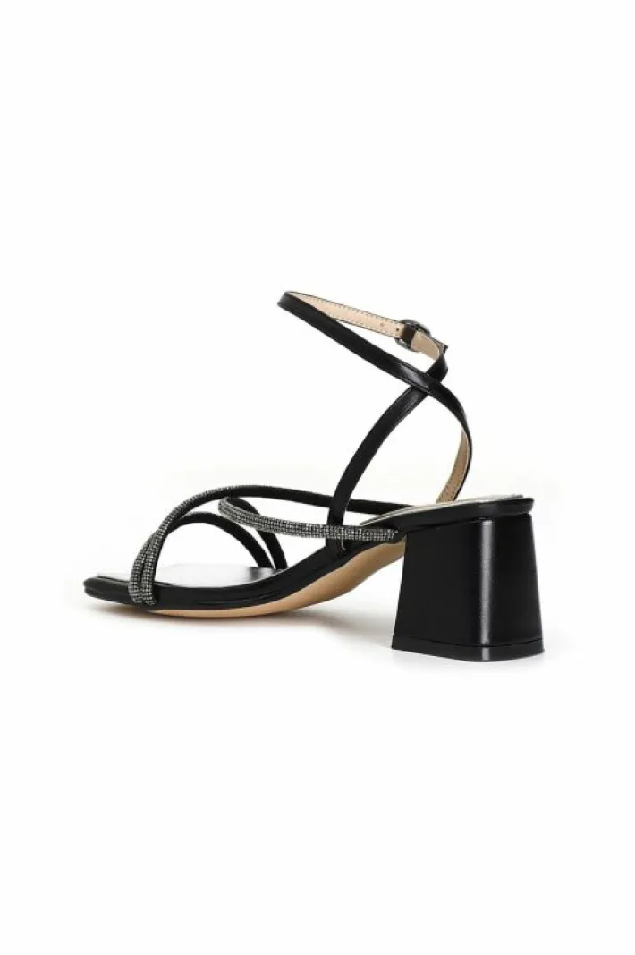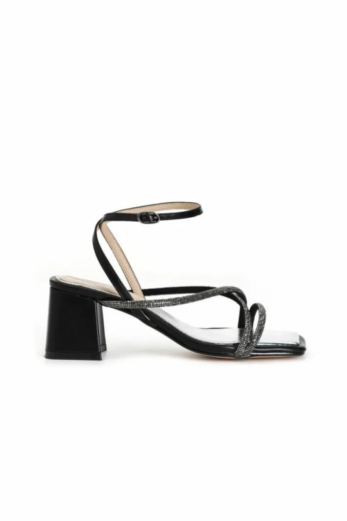 Sandali incrocio ricoperti di microstrass con laccio alla caviglia. tacco h. 65mm.