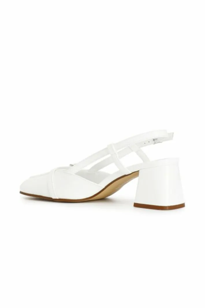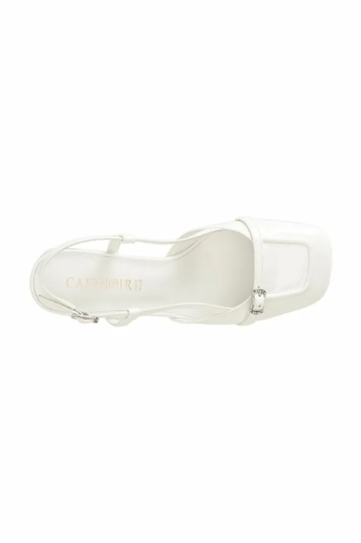 Scarpe aperte in vernice con bordo effetto mocassino e fibbia gioiello. calzatura dalla forma arrotondata. un mix tra un mocassino e una décolleté. laccio sul dietro. tacco alto 45mm. molto comoda perfetta per l’uso quotidiano.