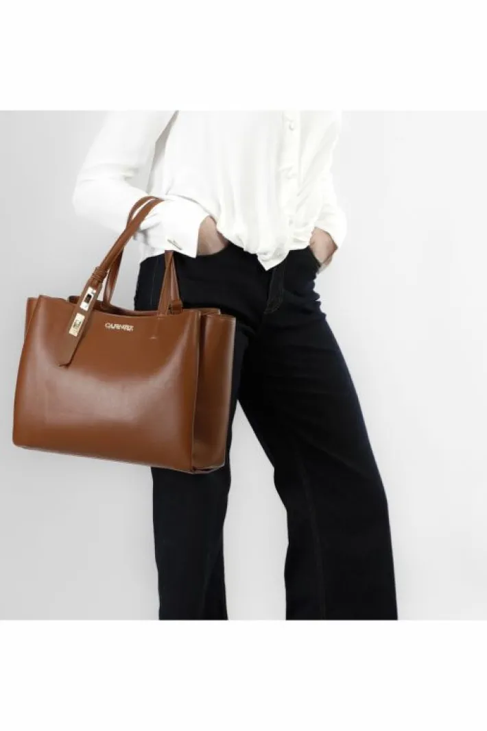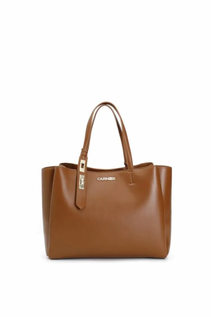 Shopping con accessorio chiusura sul manico. doppio scomparto. uno scomparto con taschino interno con zip e chiusura con cerniera l’altro con chiusura con calamita.