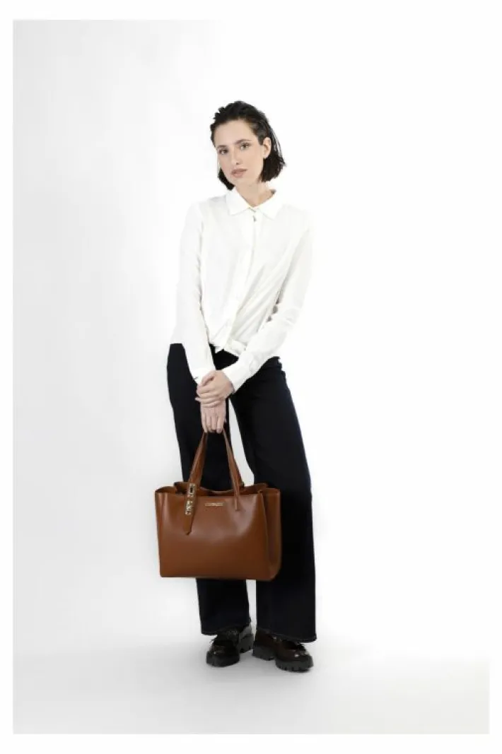Shopping con accessorio chiusura sul manico. doppio scomparto. uno scomparto con taschino interno con zip e chiusura c…