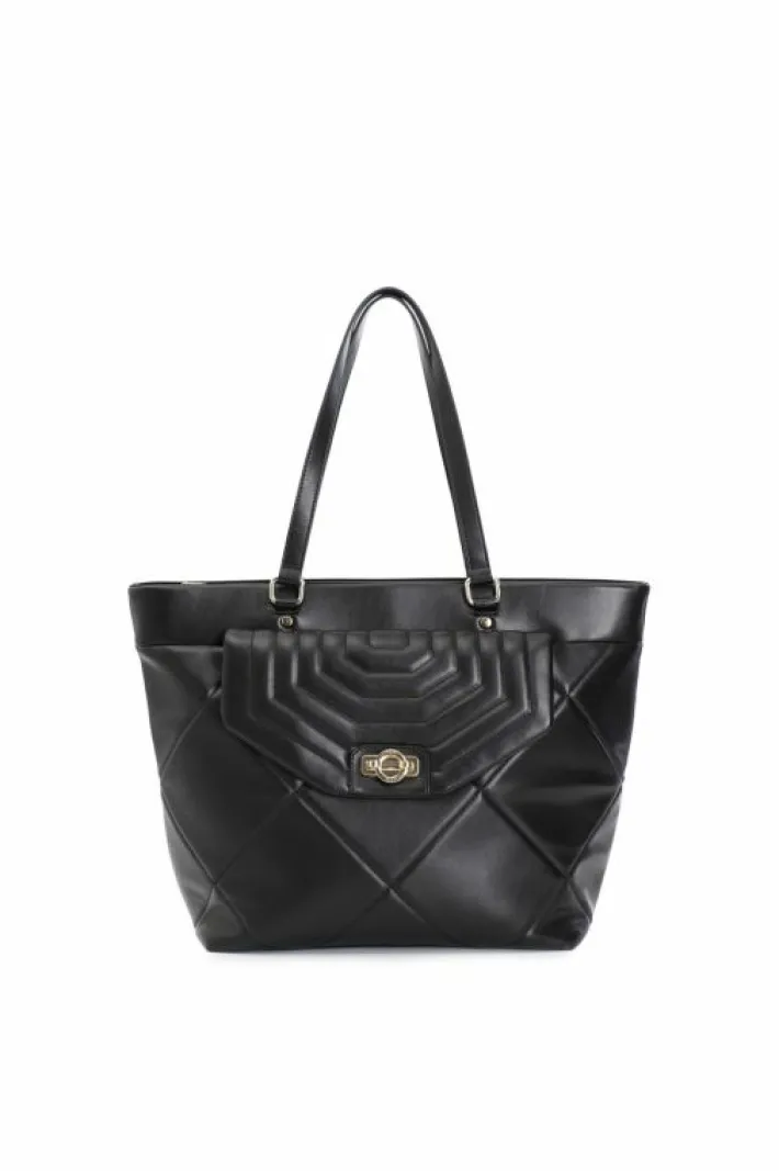 Shopping trapuntata con motivo a rombi. tasca frontale con pattina trapuntata con motivo a righe e chiusura in metallo p…