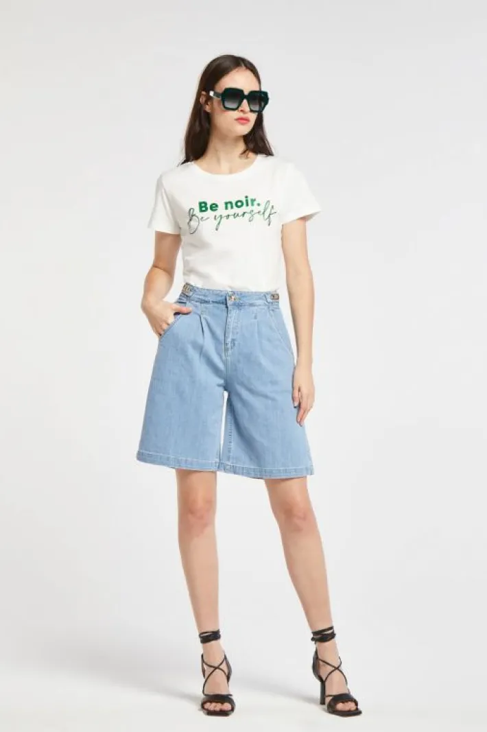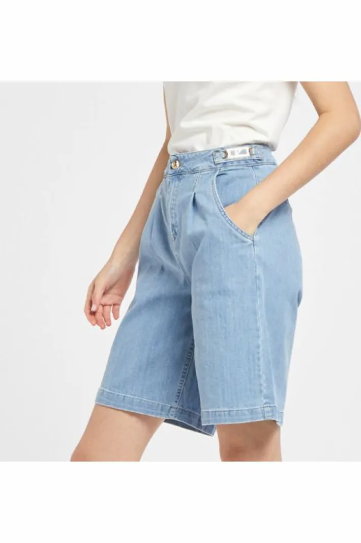 Shorts di jeans dalla vestibilità regular realizzato in una tela comfort. placchette personalizzate al cinturino