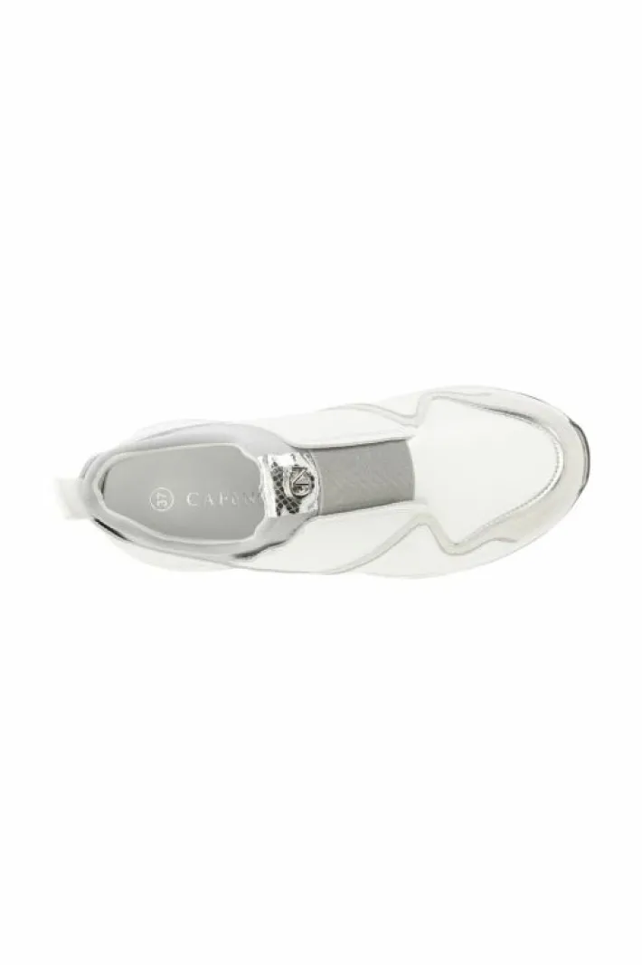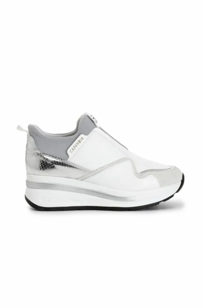 Silp-on in pelle arricchita da inserti laminati e fascia elastica che agevola la calzata. suola rialzata bicolor con logo embossed.