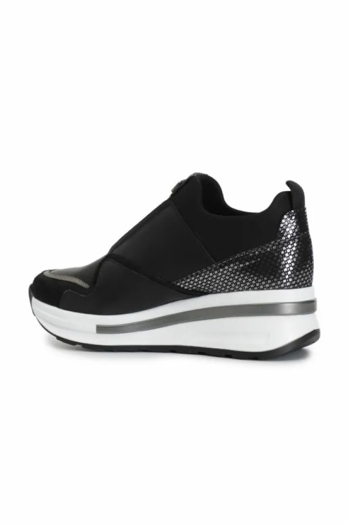 Silp-on in pelle arricchita da inserti laminati e fascia elastica che agevola la calzata. suola rialzata bicolor con logo embossed.