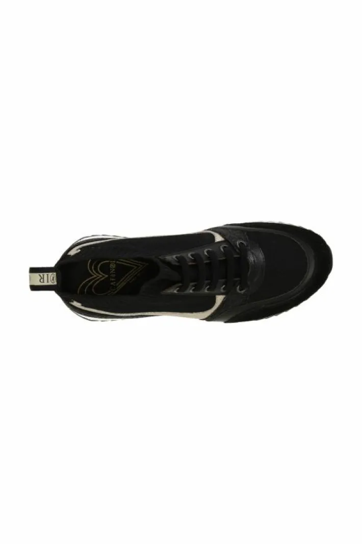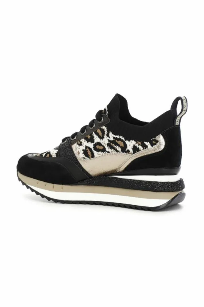 Slip on in maglia elastica con inserti in pelle e camoscio. Dettagli glitterati e lacci elastici. Suola rialzata.