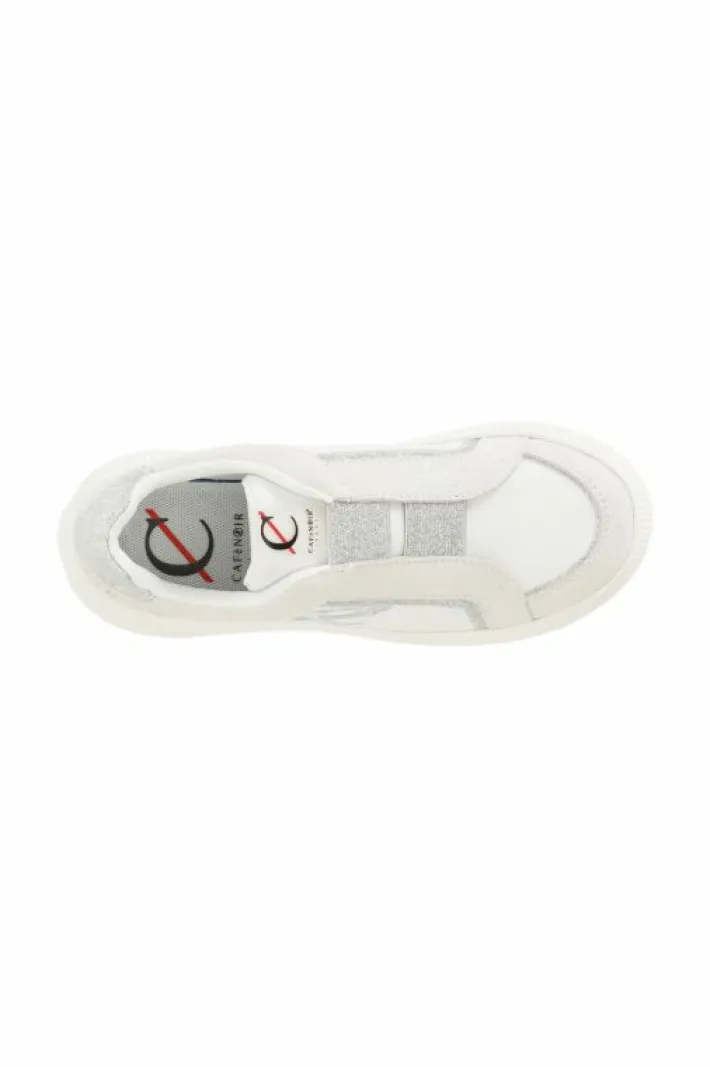 Sneakers modello slip-on in pelle scamosciata laminata. logo embossed ricamato laterale con monogramma cafènoir. suola alta 55mm