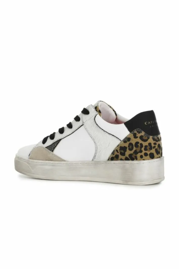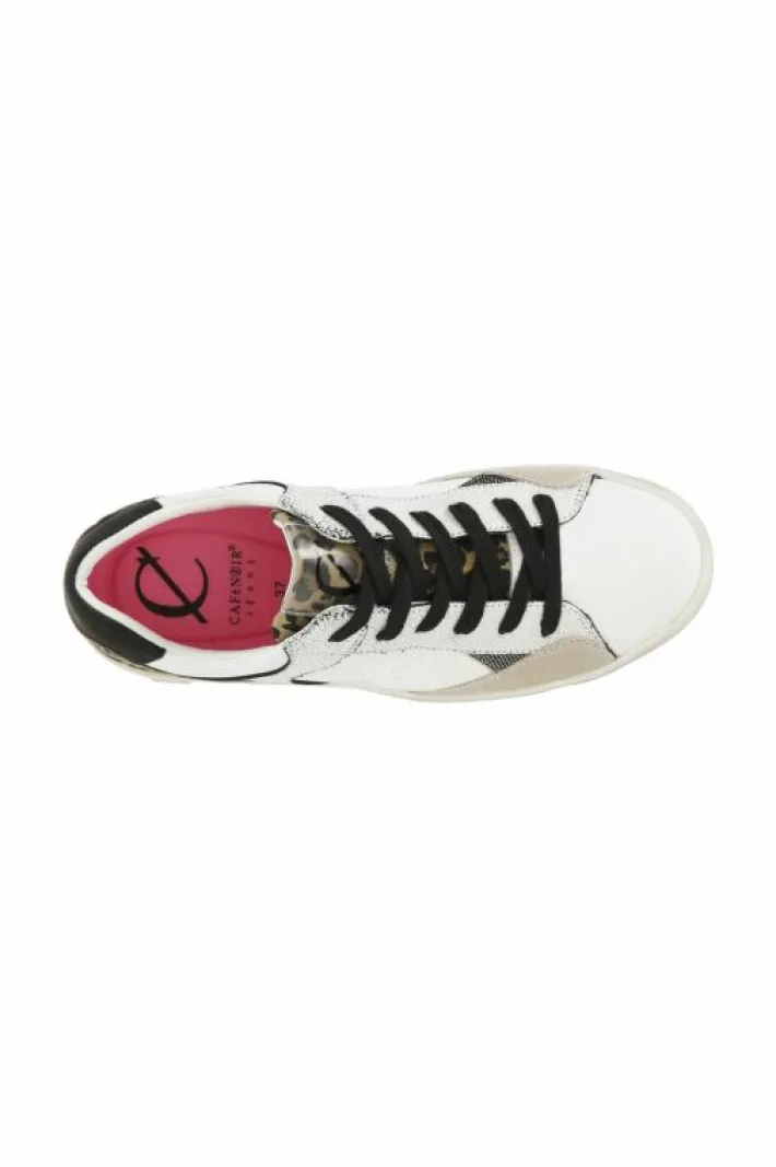 Sneakers da donna in pelle e pelle scamosciata con riporti effetto vernice e metallico. logo embossed laterale con monoframma cafènoir. calzatura dalla forma stondata. chiusura con lacci. fussbett interno. suola a cassetta 30mm.