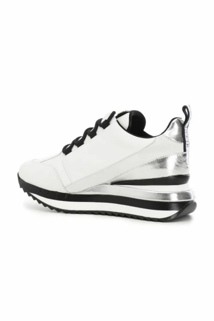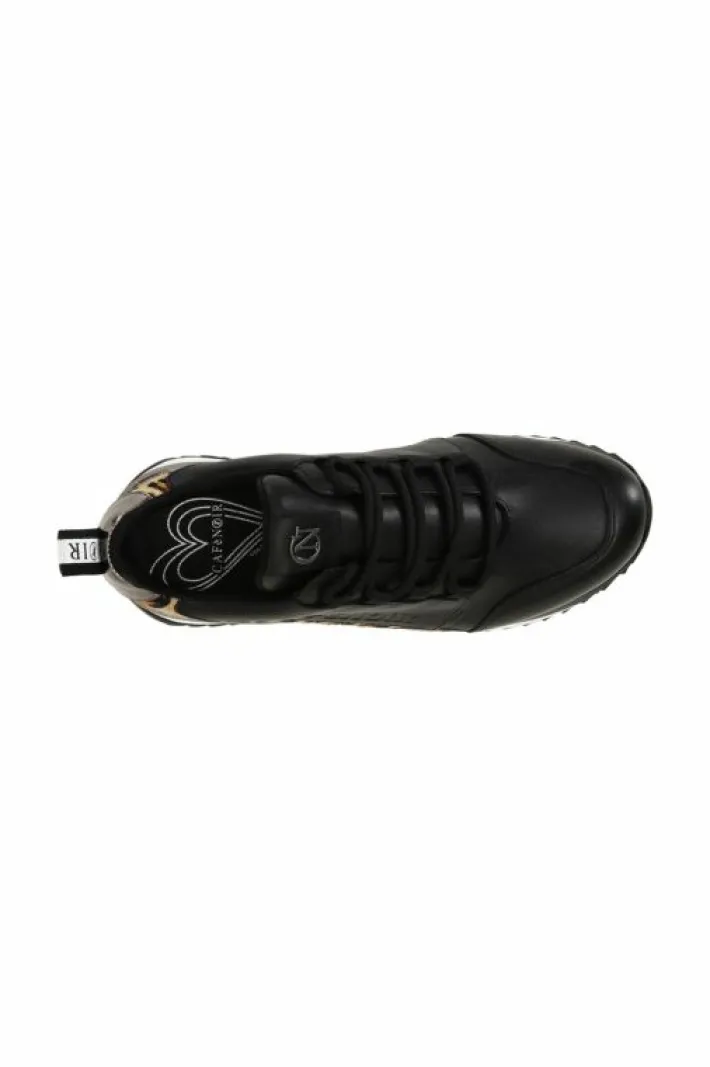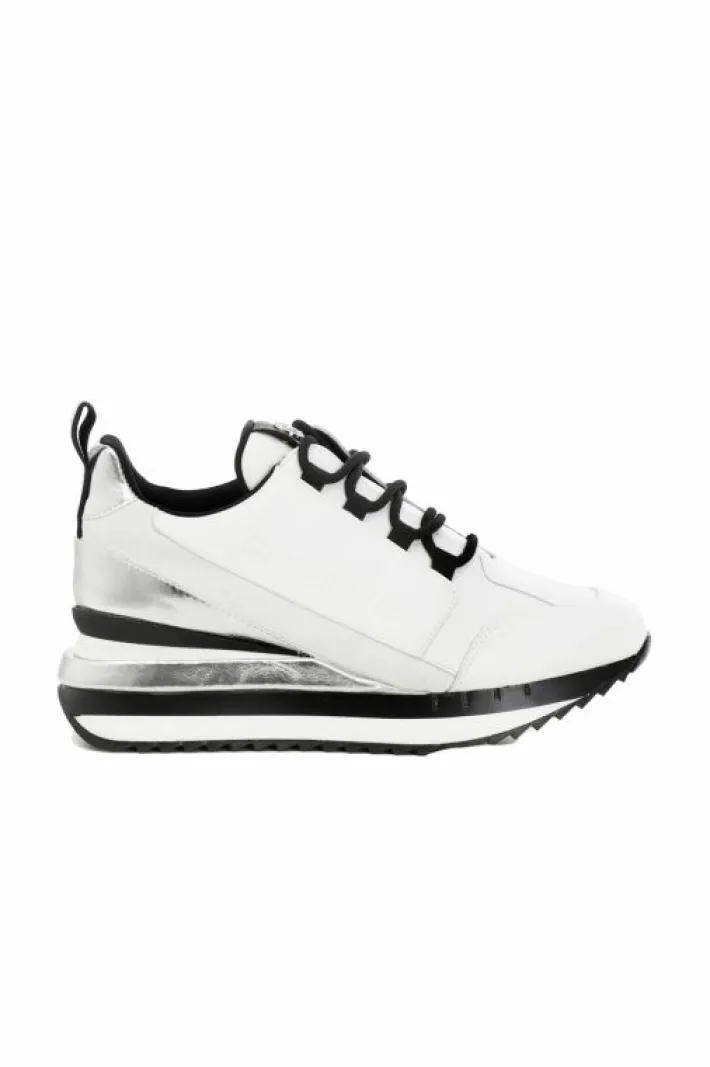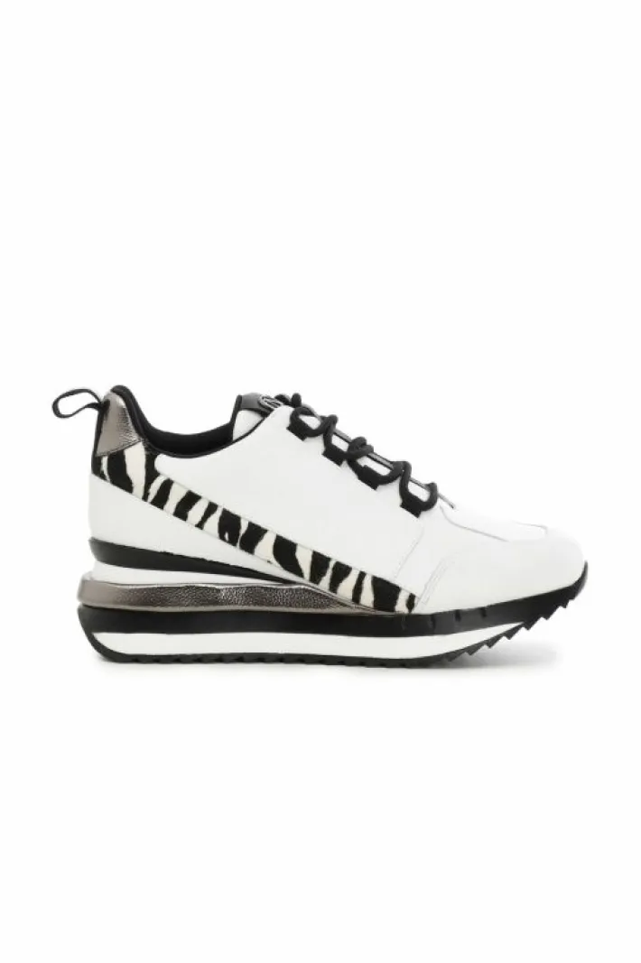 Sneakers in pelle con inserti animalier e laminati e suola rialzata. Logo embossed.