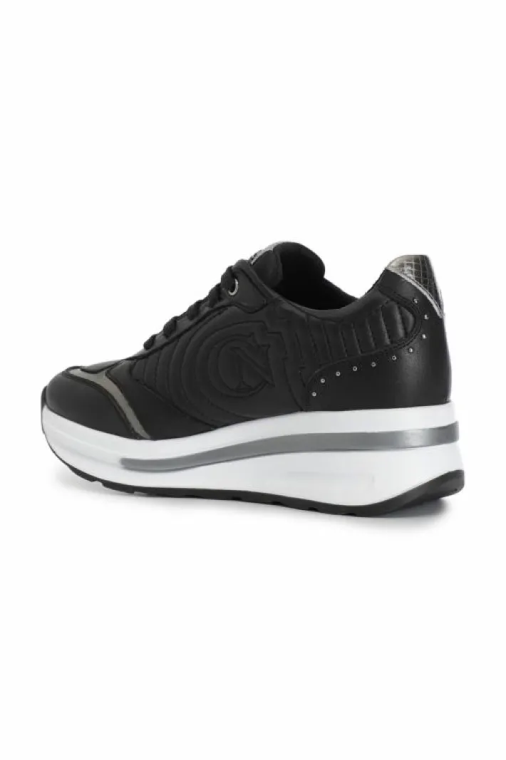 Sneakers in pelle con particolare ricamo imbottito. il logo è ricamato nella parte laterale della tomaia. inserti laminati e microborche sul tallone. suola rialzata bicolor con logo embossed