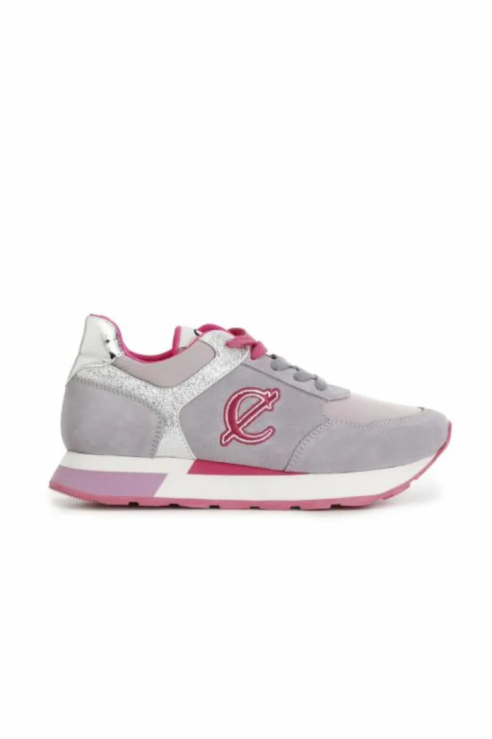 Sneakers in pelle scamosciata e tessuto con riporti glitter. logo embossed laterale con monogramma cafènoir. chiusura con lacci colorati. suola in gomma multicolor.