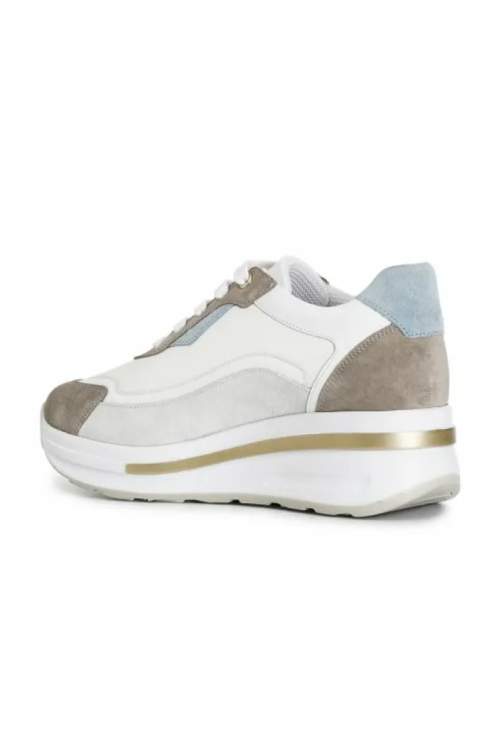 Sneakers in pelle scamosciata e riporti in tessuto. suola con zeppa bicolor di 40mm con logo embossed.