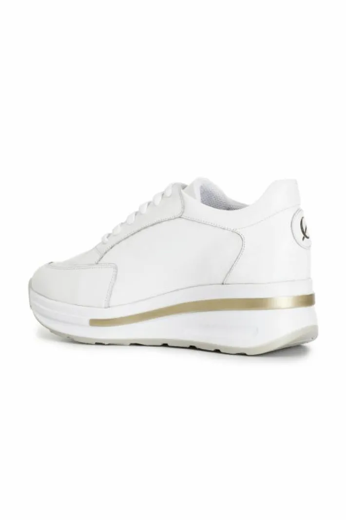 Sneakers bianca in pelle. chiusura con lacci. suola con zeppa bicolor di 40mm con logo embossed.