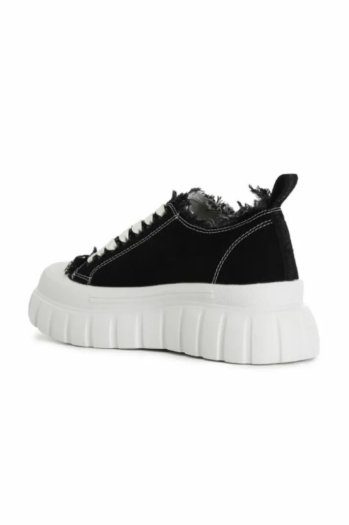 Sneakers allacciate in tessuto sfrangiato e cuciture a contrasto. punta in gomma. chiusura con lacci in tono alla cucitura a contrasto. suola rialzata 55mm decorata da un pattern rigato.