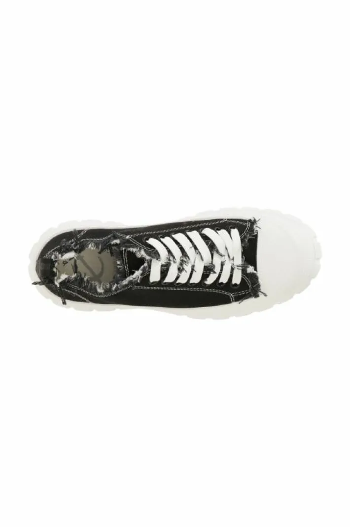 Sneakers allacciate in tessuto sfrangiato e cuciture a contrasto. punta in gomma. chiusura con lacci in tono alla cucitu…