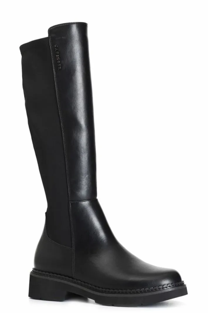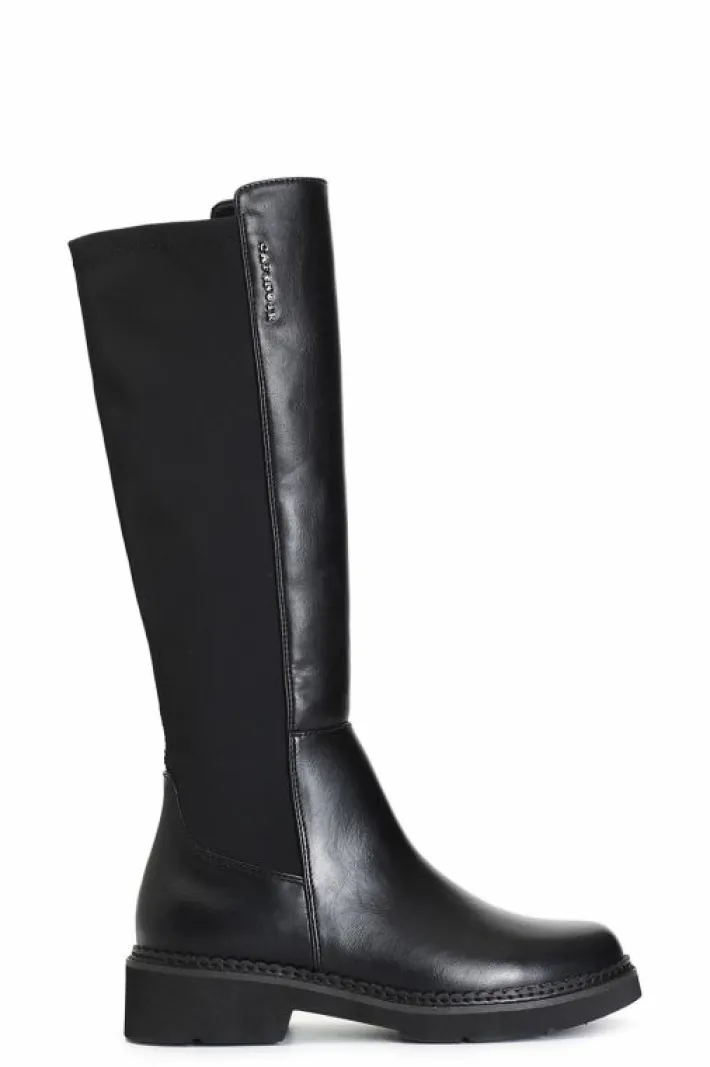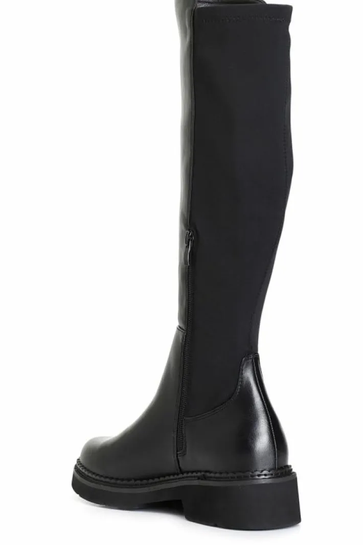 Stivale da donna elasticcizzato e accessorio lettering cafènoir. cerniera nella parte interna dalla calzatura. il soletto è in pelle.