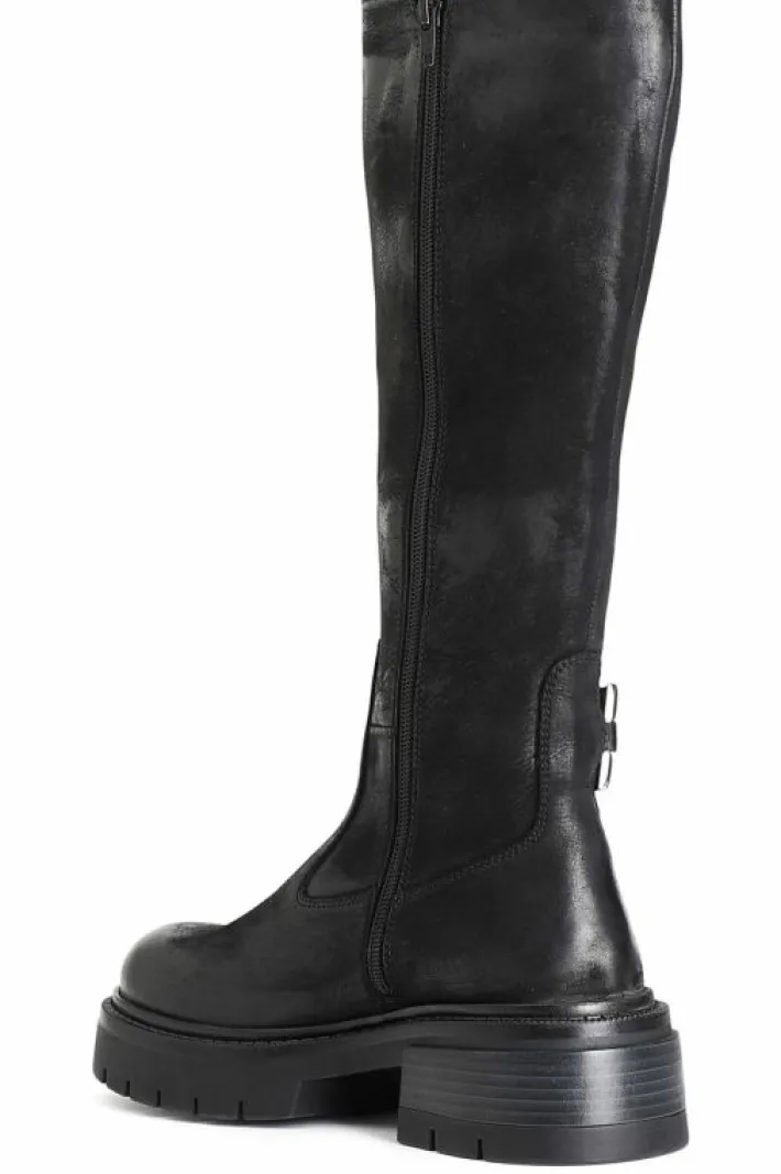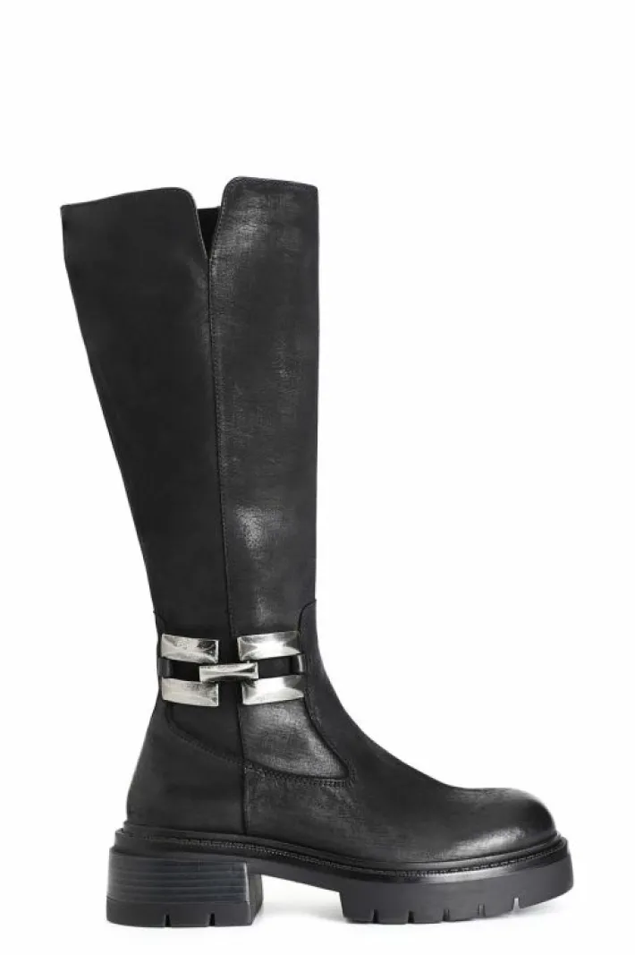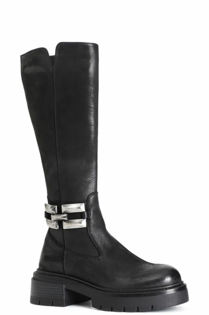 Stivale in pelle con morsetto laterale a decoro. cerniera nella parte interna della calzatura. il soletto è in pelle. modello versatile e dinamico ideale per completare moltissimi outfit.