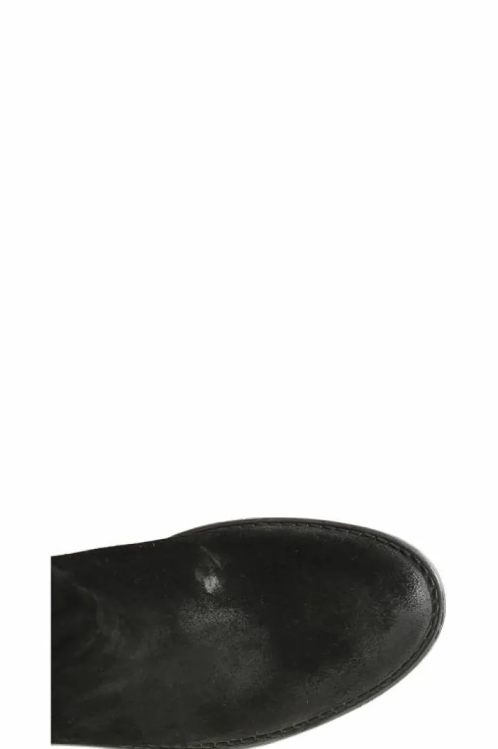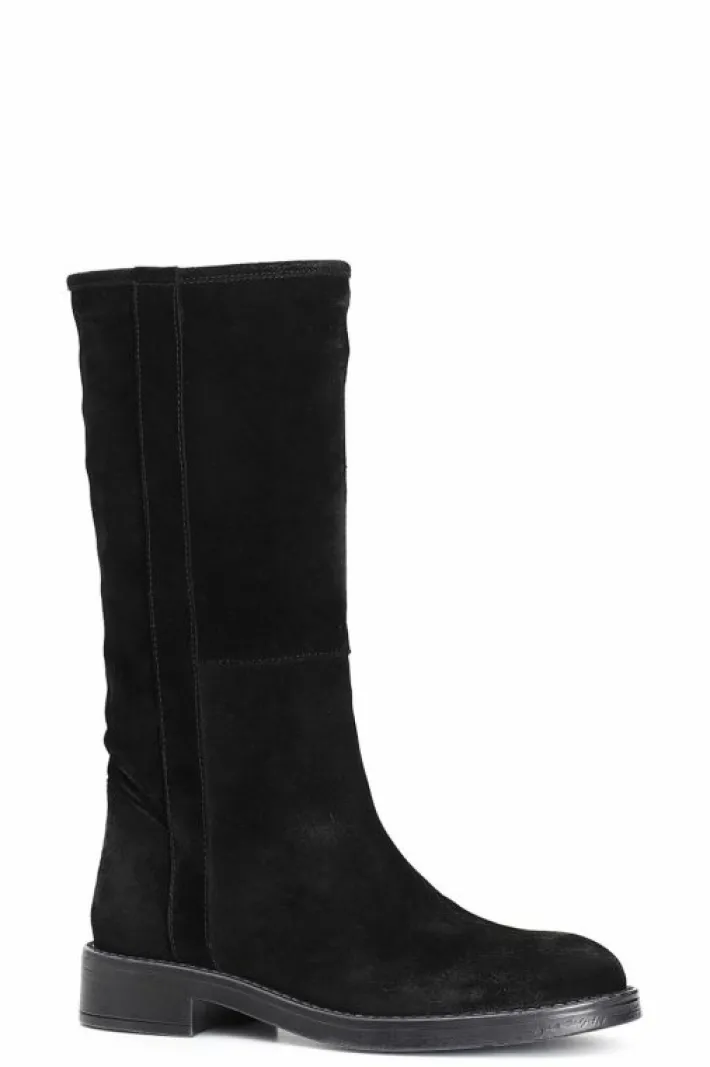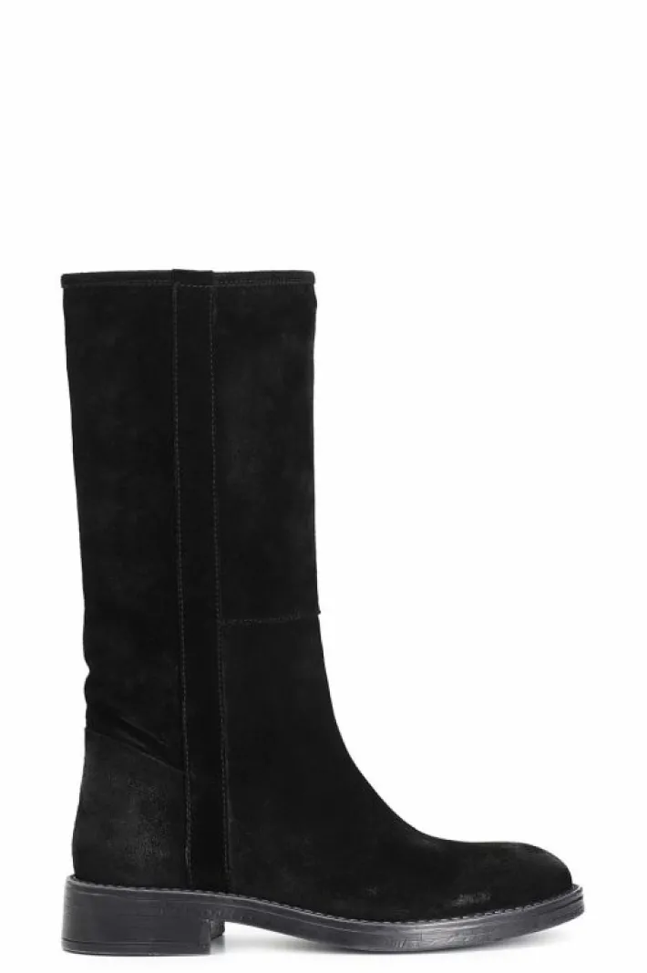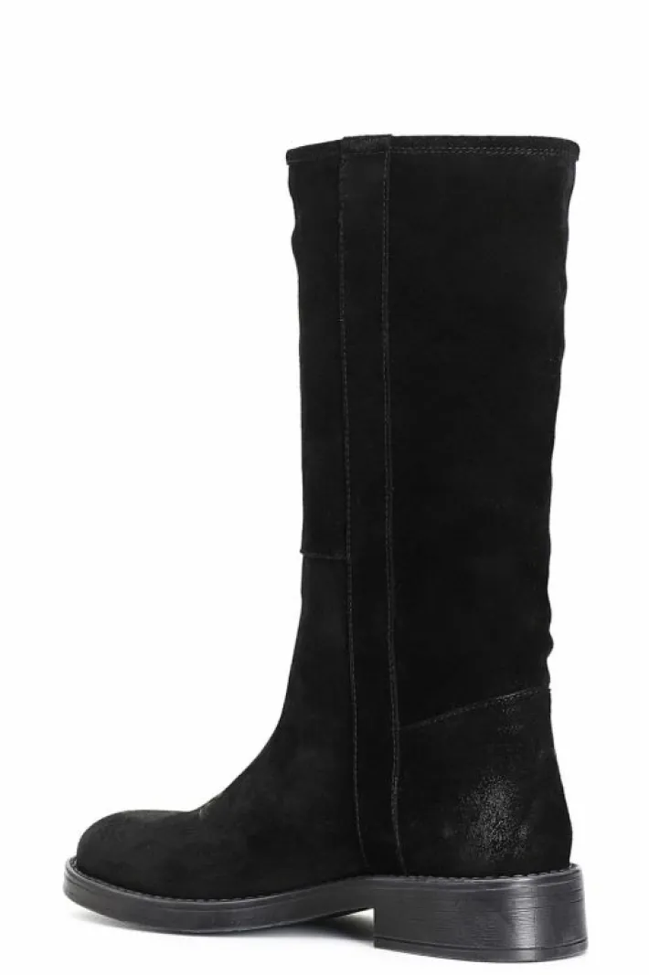 Stivale modello cavaliere in pelle scamosciata dalla forma arrotondata. tacco alto 33 mm. il soletto è in pelle.