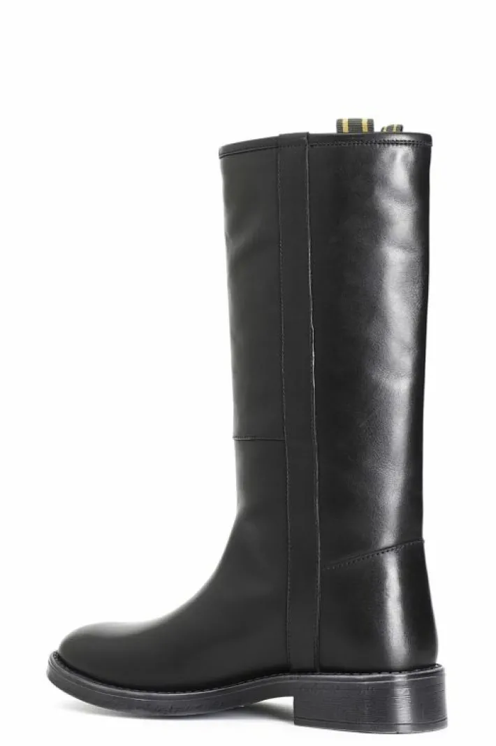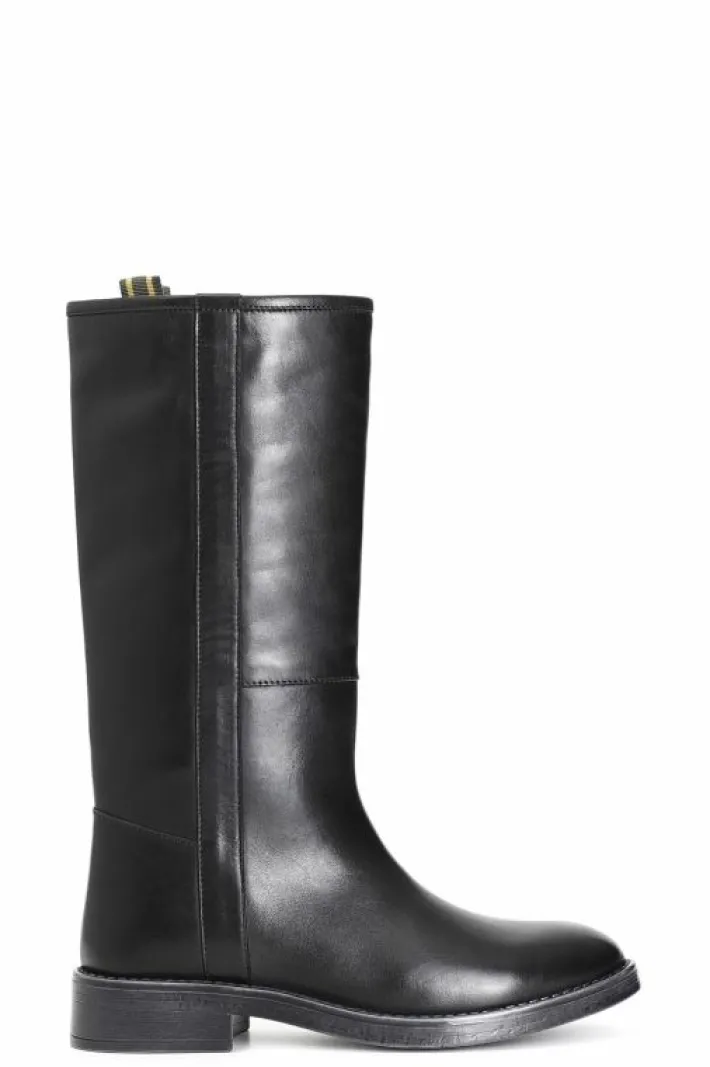 Stivale modello cavaliere in pelle dalla forma arrotondata. tacco alto 33 mm. il soletto è in pelle.