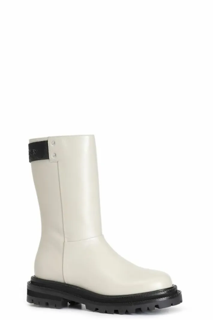 Stivaletto donna in pelle arricchito da un particolare nastro logato nero cafènoir e borchie di tendenza. il soletto è in pelle.