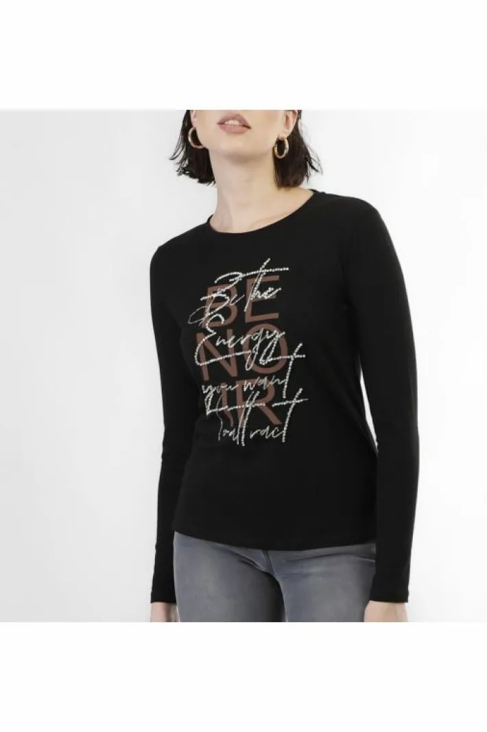T-shirt a manica corta lunga in cotone elasticizzato con stampa e ricamo riproducono il nostro slogan “be noir”.