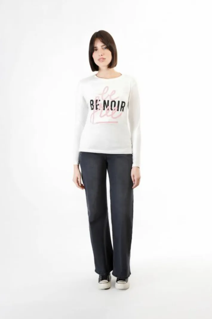 T-shirt a manica lunga realizzata in cotone elasticizzato con stampa “be noir be free” sul davanti.