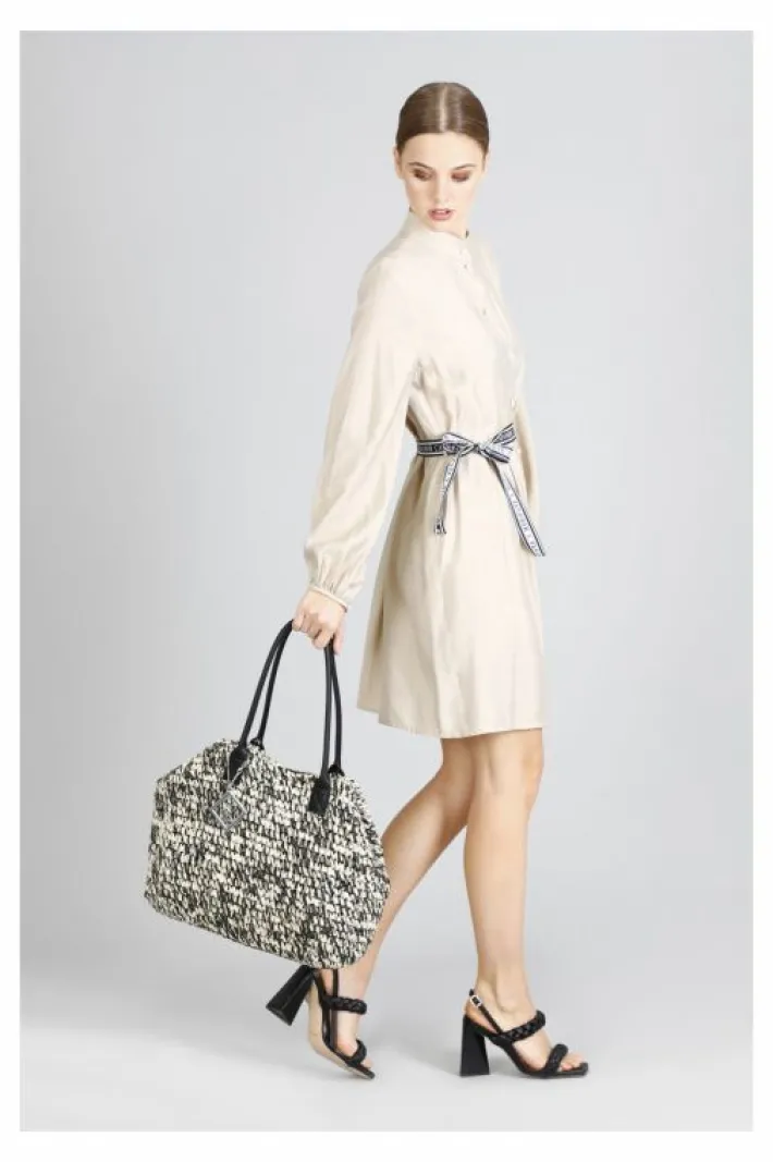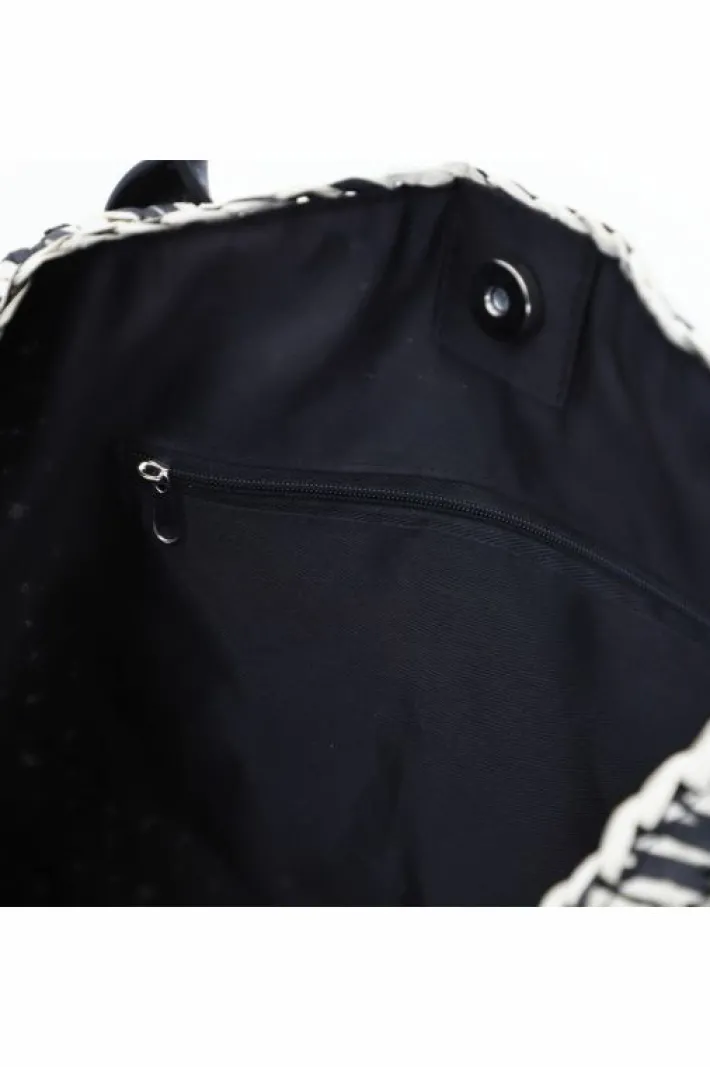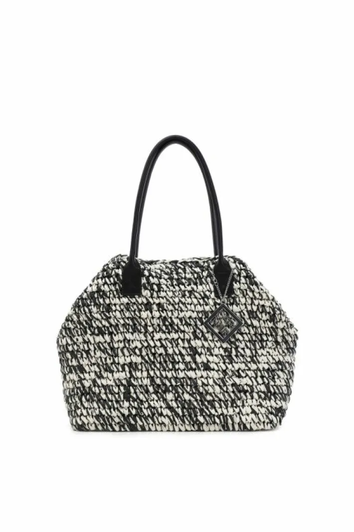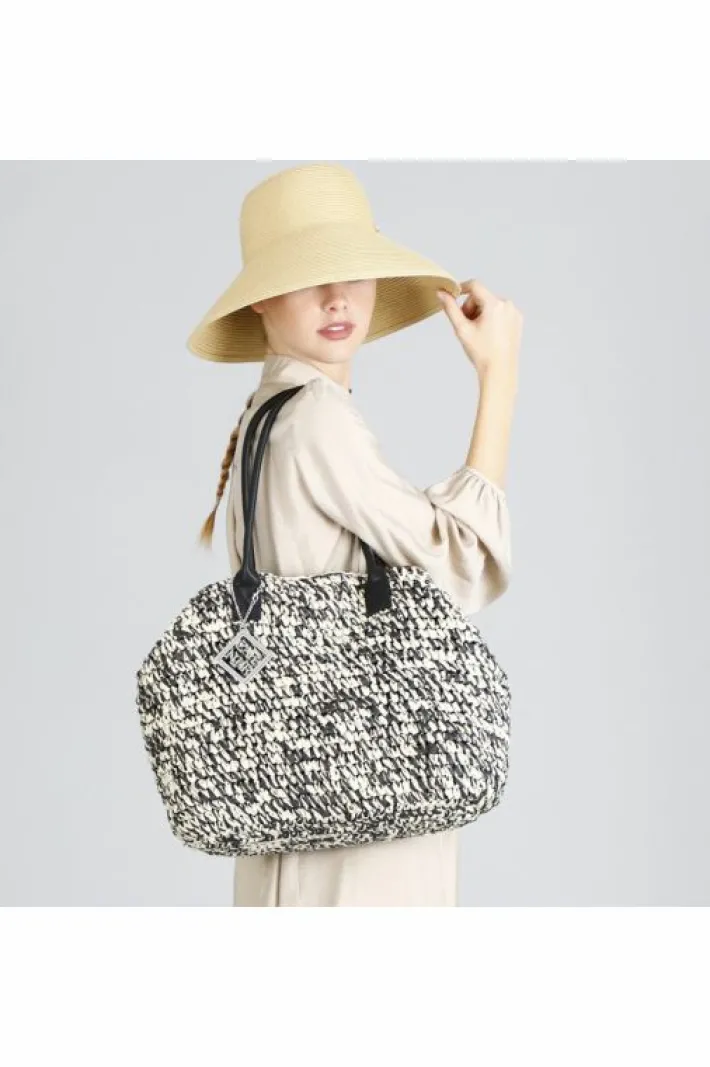 Tote bag in crochet di carta bicolore super capiente con doppia portabilità (laccetto interno).