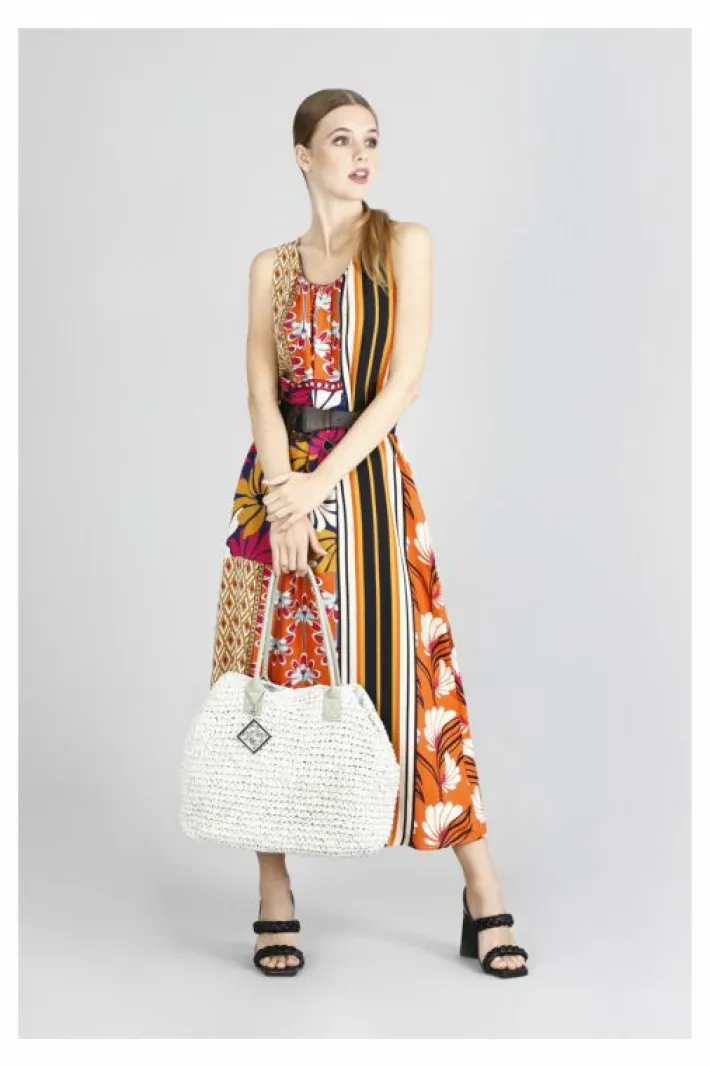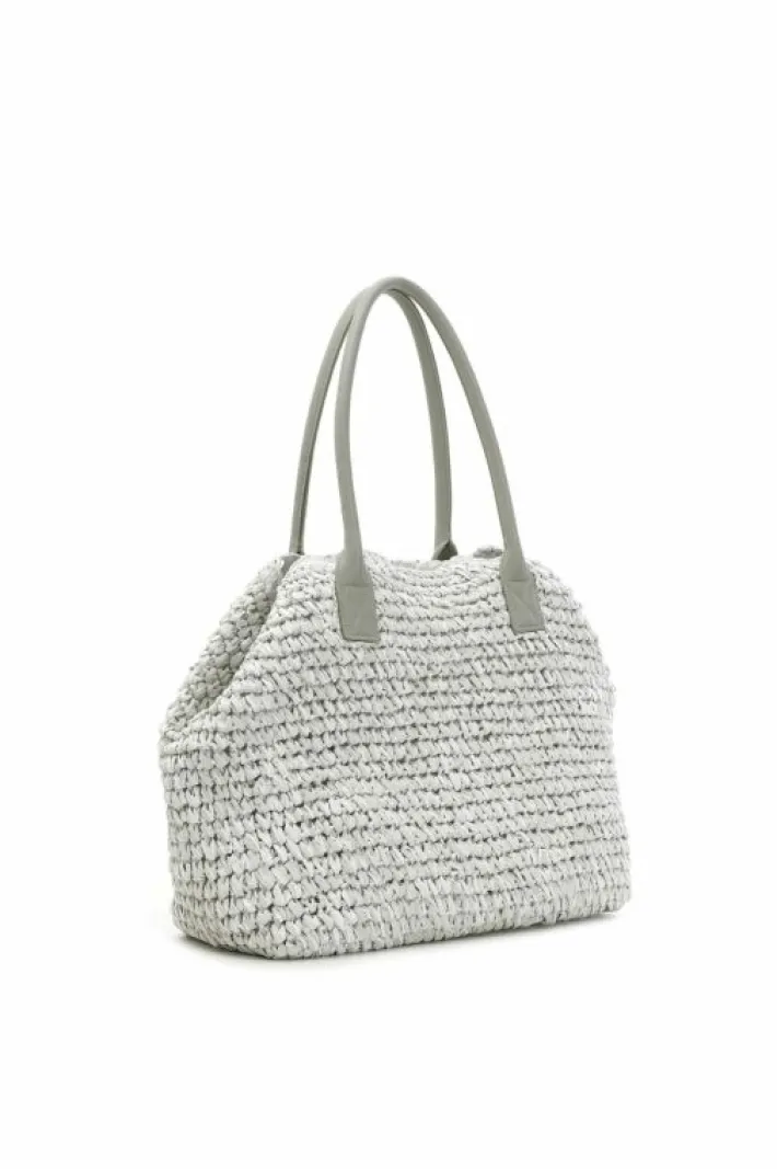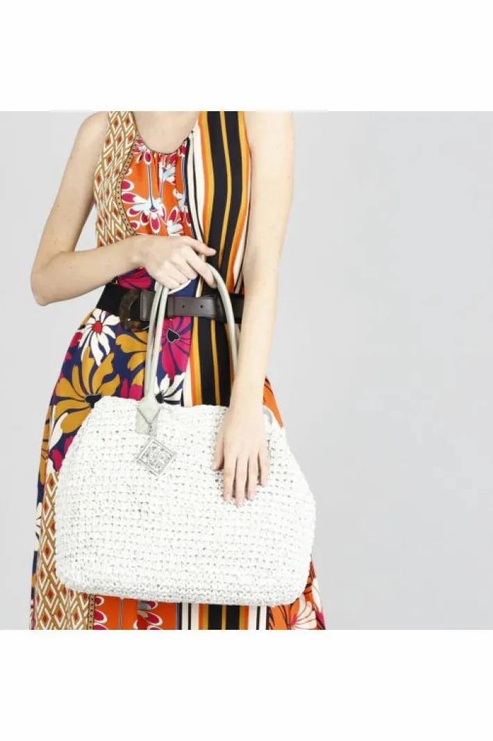 Tote bag in crochet di carta bicolore super capiente con doppia portabilità (laccetto interno).