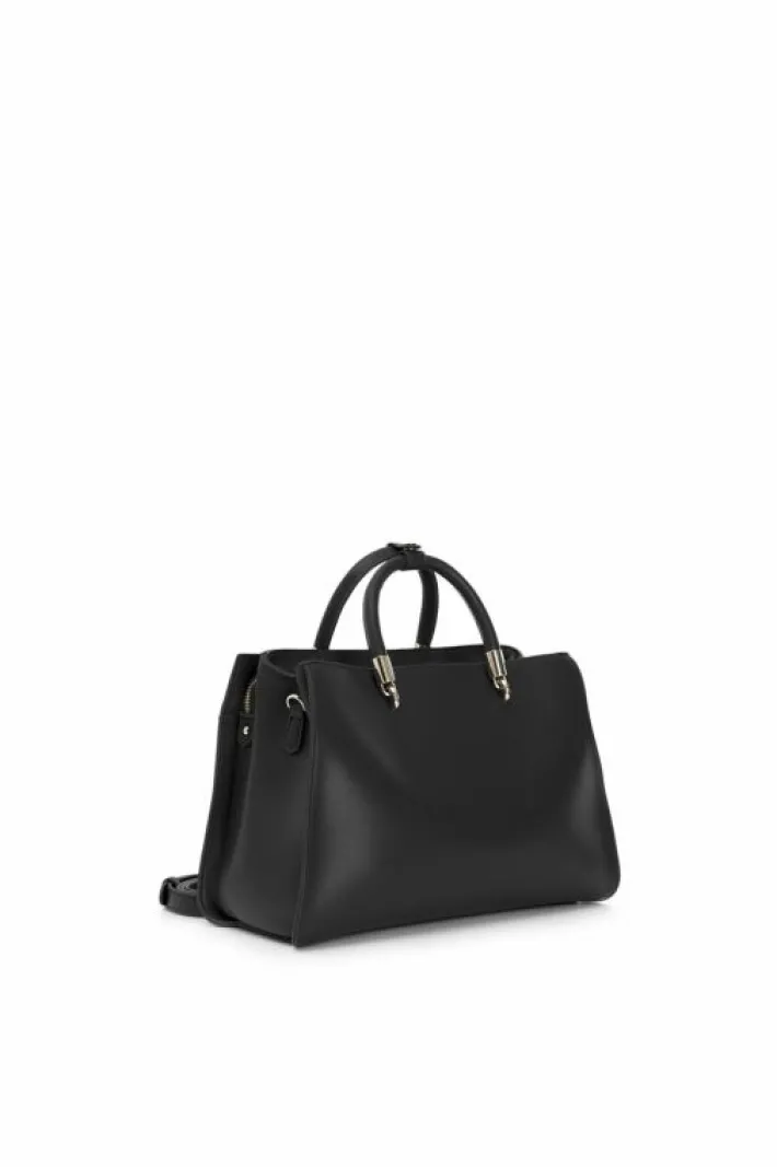 Tote con applicazione di catena in metallo dorato e logo cafènoir. manico doppio imbottito. doppio scomparto e doppia c…