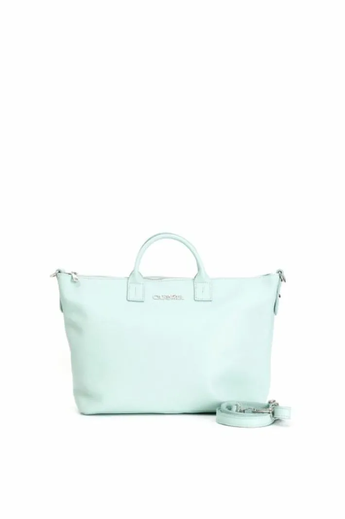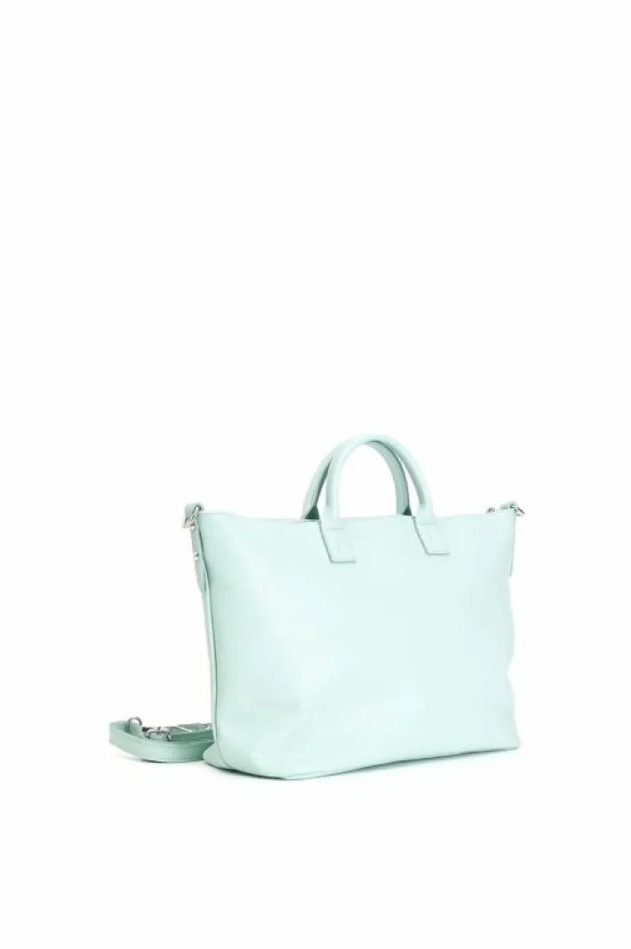 Tote dalla forma trapezoidale in pelle con manici provvista di tracolla optional.