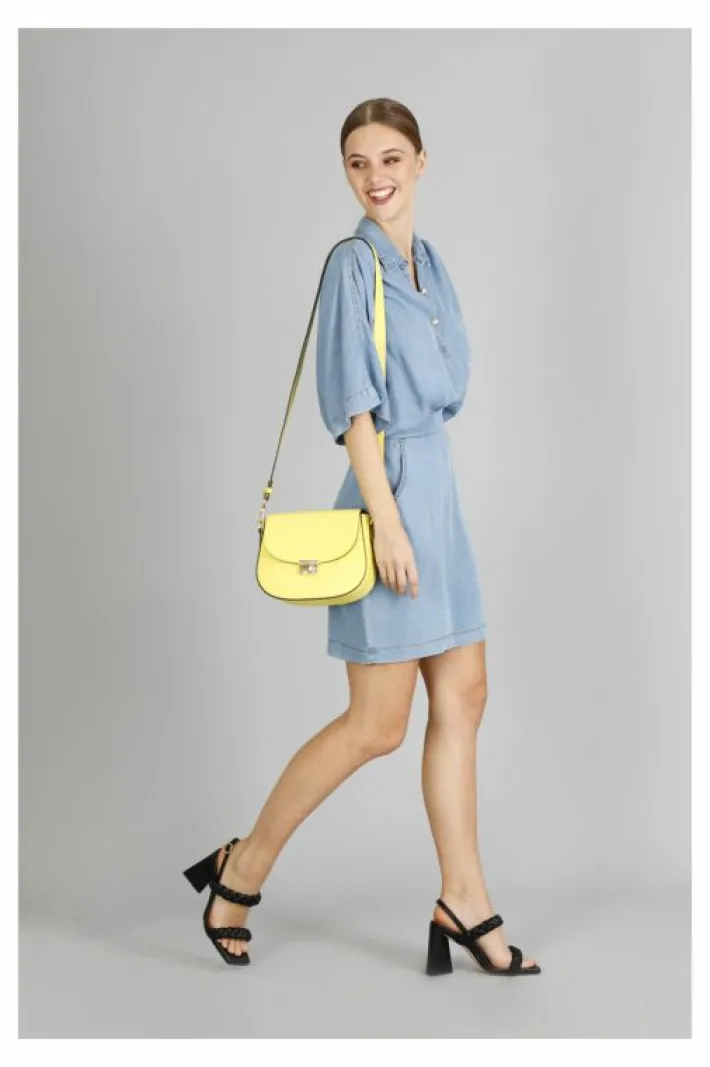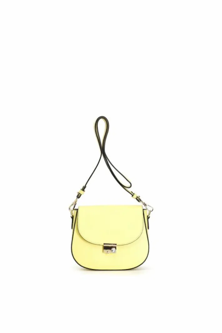 Piccola pattina in doppio materiale: crosta e pelle in tono con chiusura con strass.