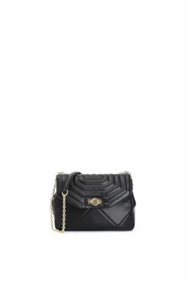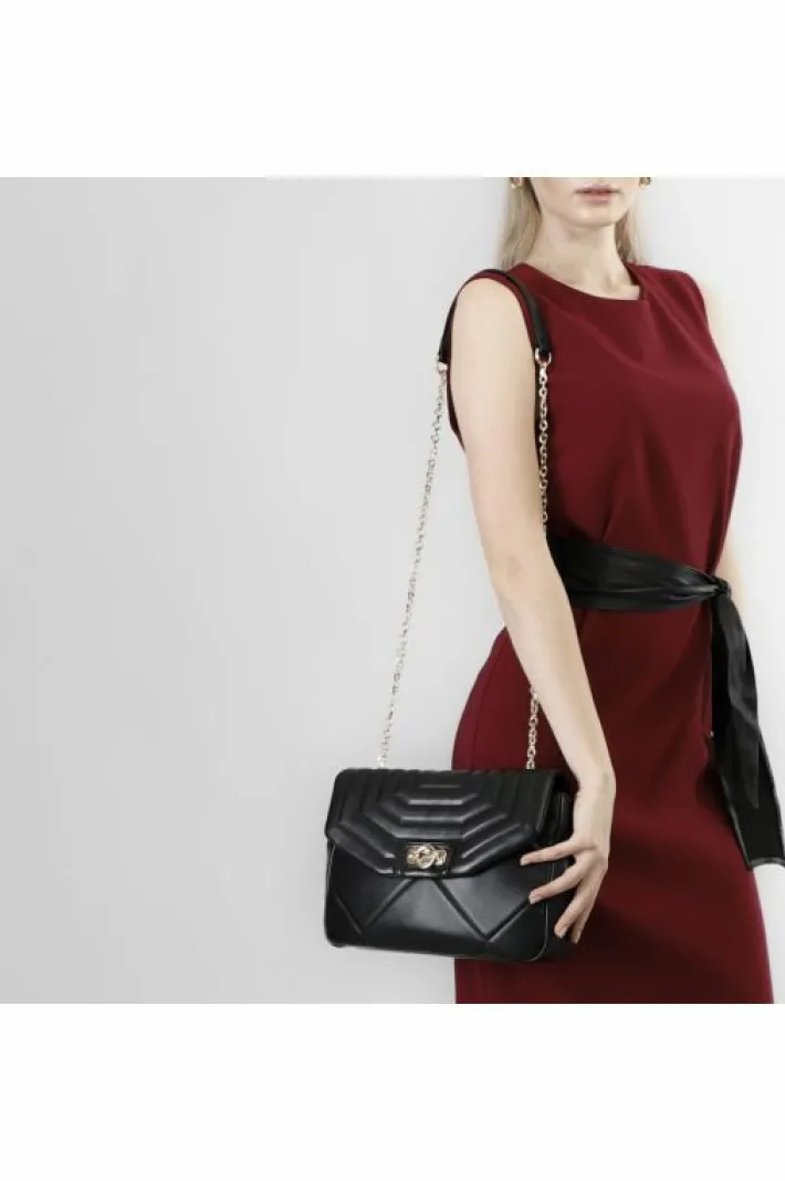 Tracolla grande trapuntata con motivo a rombi e pattina trapuntata con motivo a righe. chiusura in metallo personalizzata. tracollina in catena.