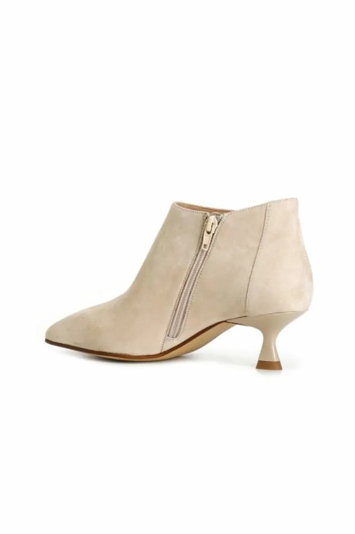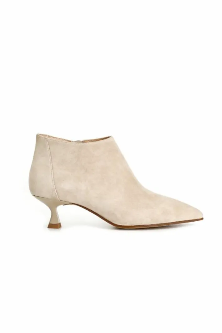 Tronchetti affusolati in pelle scamosciata con zip laterale interna per facilitare la calzata. tacco a rocchetto alto 45mm. calzatura alla moda ma indossabile anche nel quotidiano per soddisfare le esigenze di uno stile di vita dinamico.