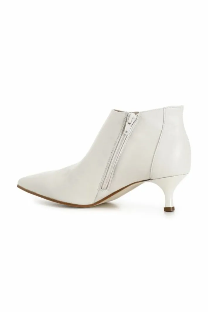 Tronchetti in pelle con cerniera laterale e tacchetto medio. leggero dettaglio cromato inserito sul retro.