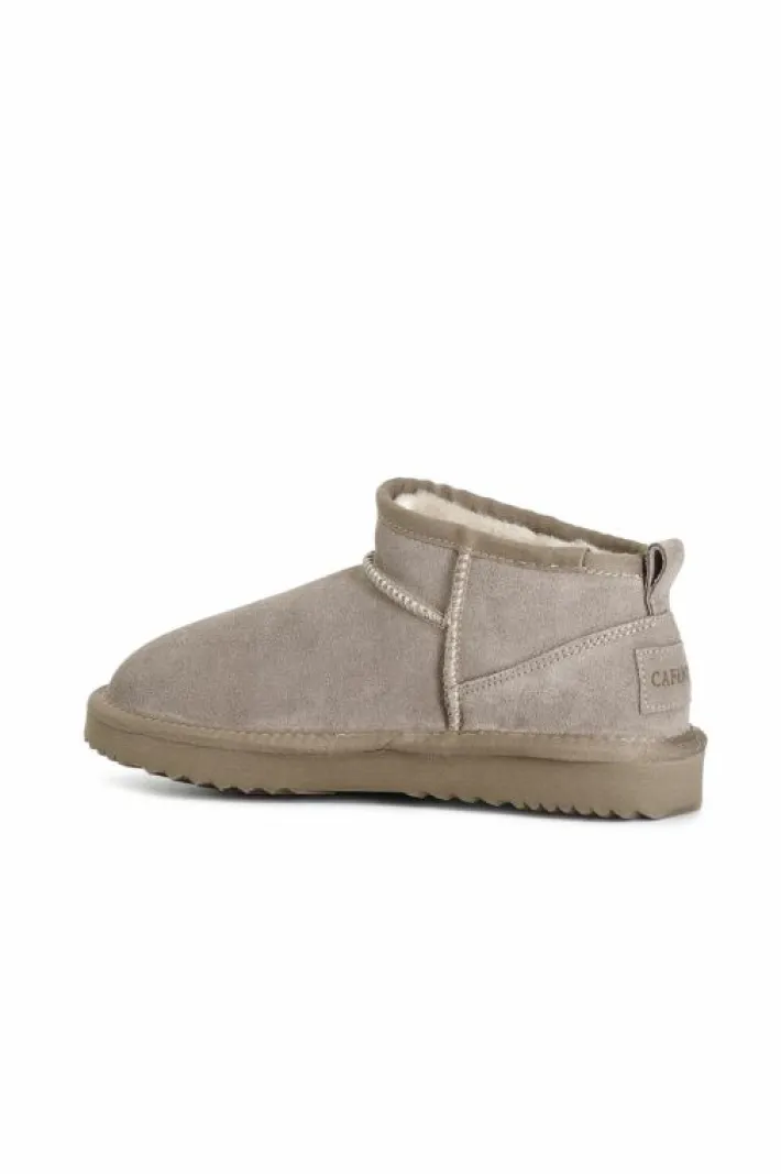 Tronchetto alla caviglia in pelle scamosciata ed interno in pelliccia sintetica. logo cafènoir in metallo. suola alta 25 mm.