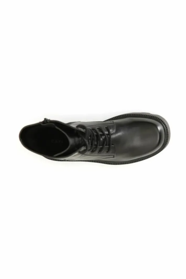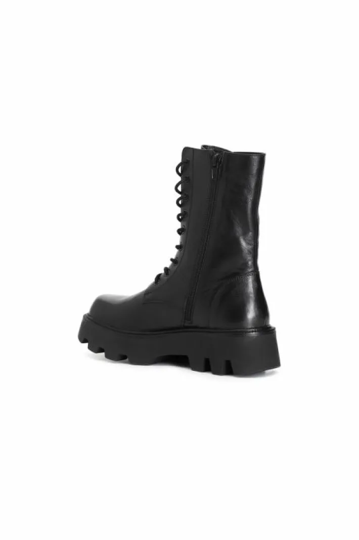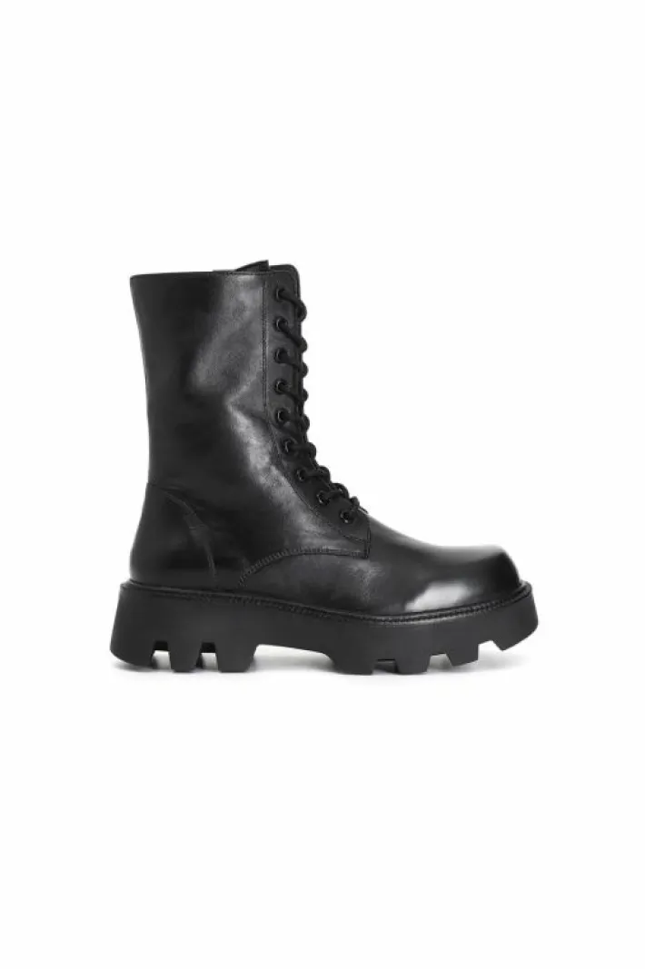 Tronchetto monocolore da donna in pelle allacciato. soletto in pelle e suola carro armato.
