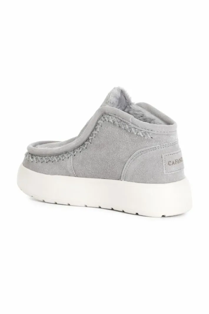 Tronchetto da donna con suola rialzata e con impunture. tomaia in pelle scamosciata e fodera in pelliccia sintetica.