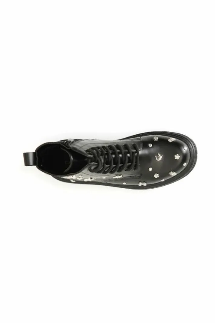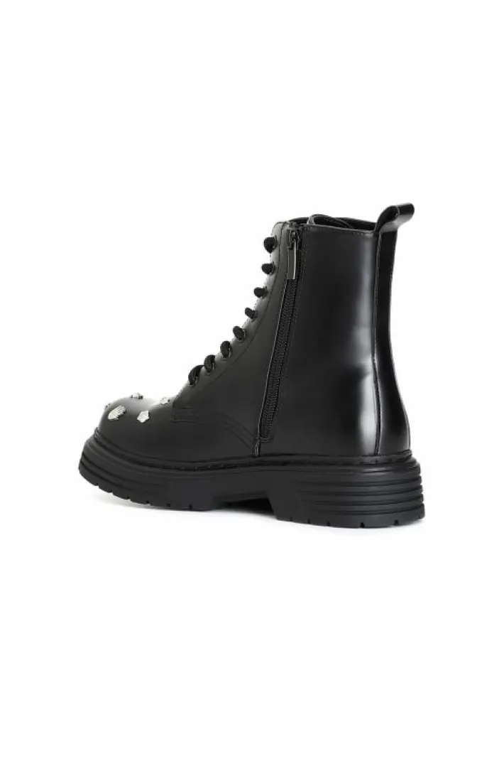 Tronchetto da donna allacciato decorato con multi borchie fantasia. calzatura perfetta per arricchire il tuo outfit.