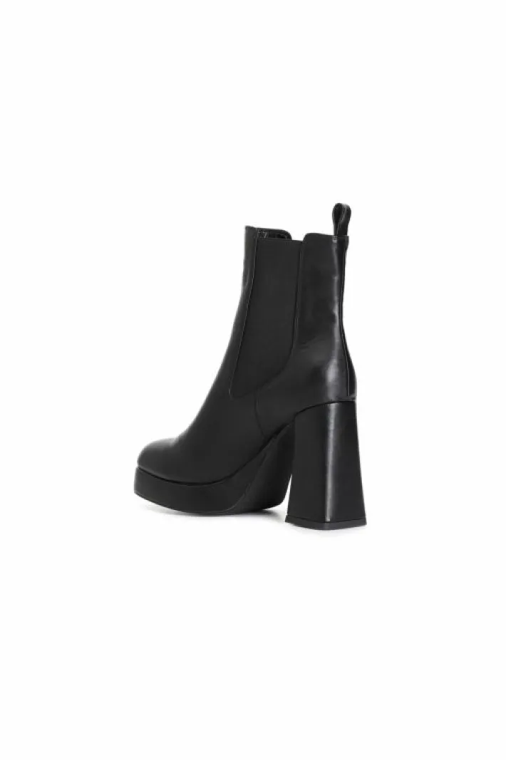 Tronchetto da donna in similpelle con elastici laterali per agevolare la calzata. plateau di 22 mm e tacco alto 100 mm. forma stondata. il soletto è in pelle. il tutto dona equilibrio tra altezza bellezza e comodità.