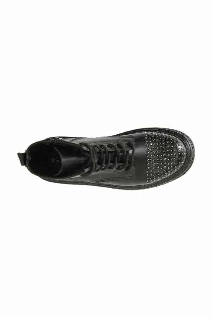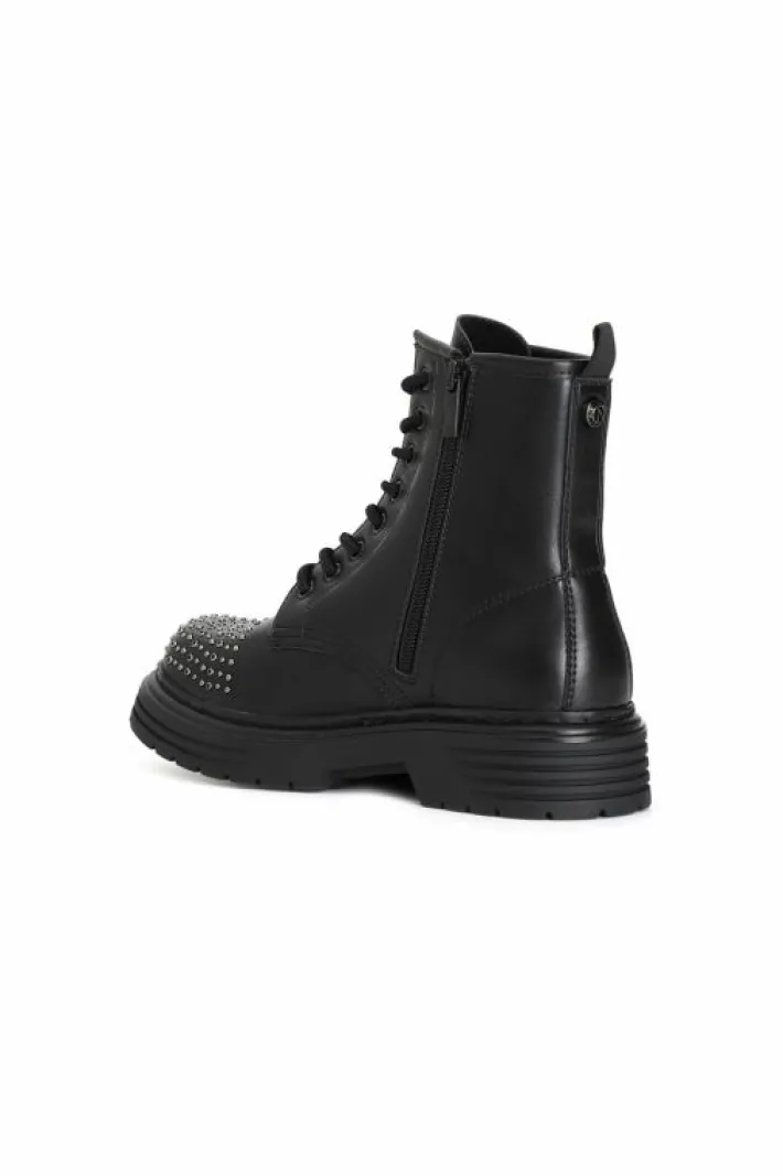 Prodotto iconico da sempre best seller indiscusso. questo tronchetto in similpelle allacciato con borchie ornamentali sulla punta. cerniera interna. nella sua semplicità è la chiave di volta per completare i look più svariati.