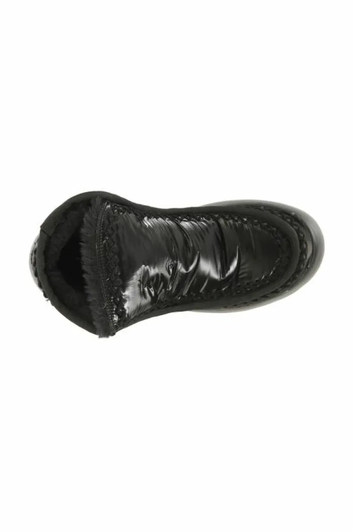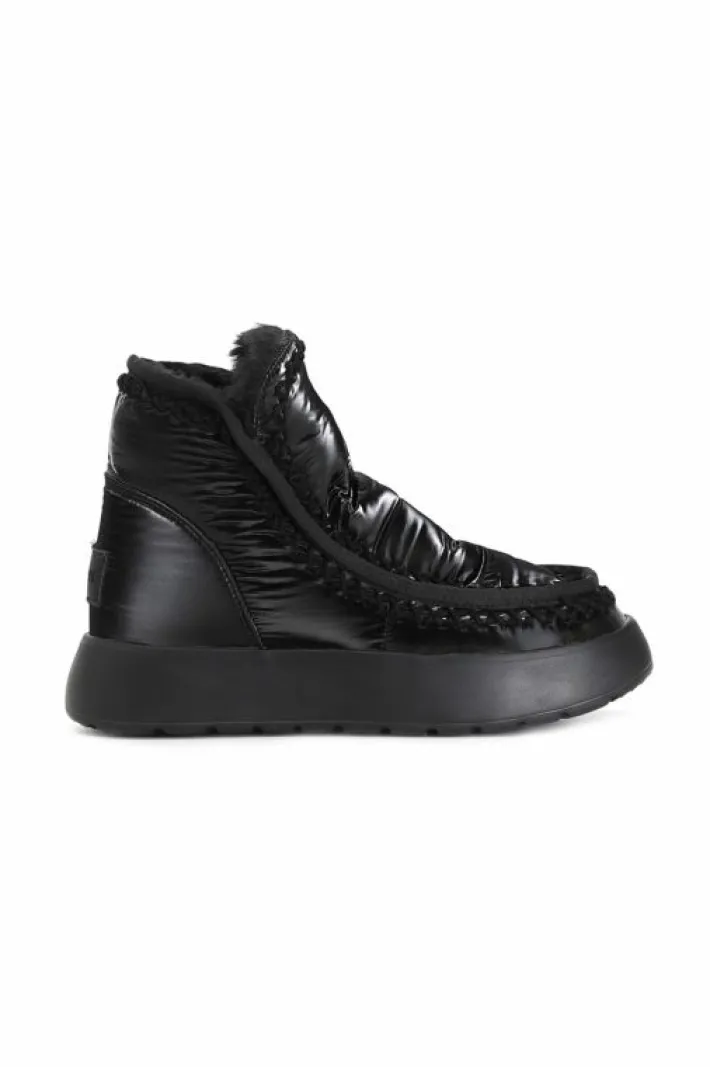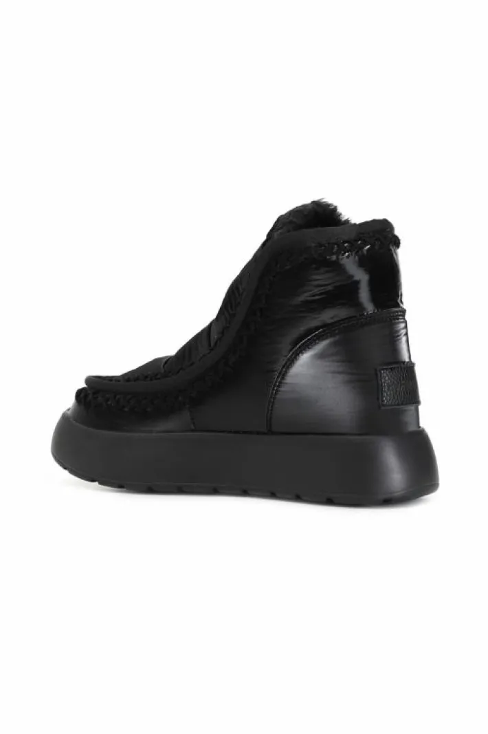 Tronchetto da donna con suola rialzata. tomaia in nylon e fodera in pelliccia sintetica.