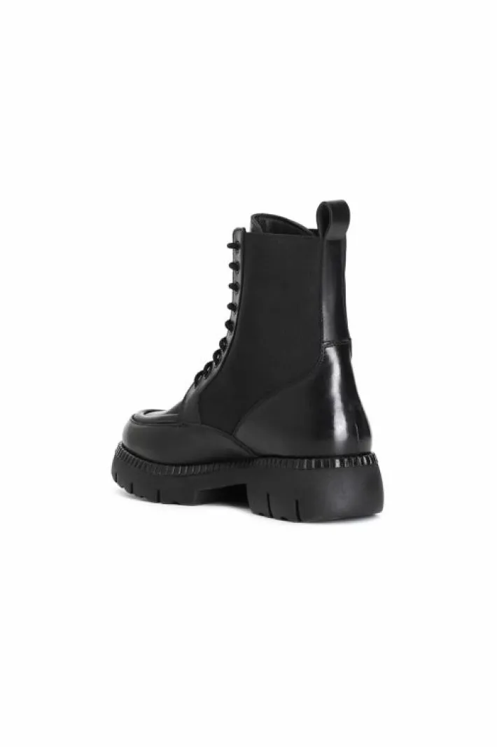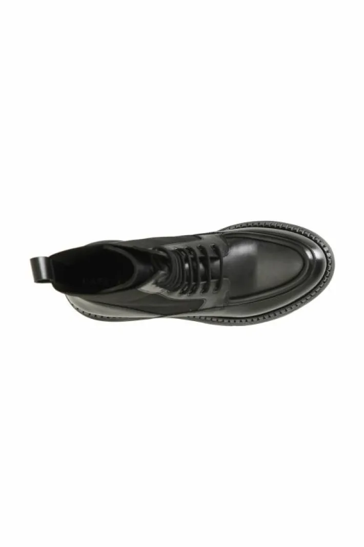 Tronchetto da donna in pelle allacciato con elastico. il soletto è in pelle. plateau alto 25 mm. tacco da 40 mm.