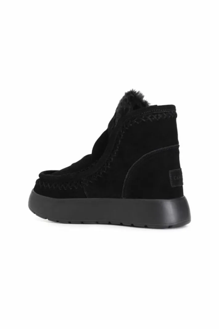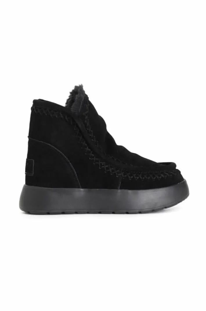 Tronchetto da donna con suola rialzata. tomaia in pelle scamosciata e fodera in pelliccia sintetica.