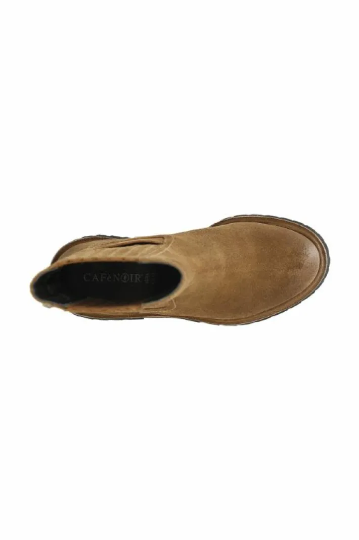 Tronchetto in pelle scamosciata con elastici rivestiti con borchietta personalizzata. tacco alto 50 mm. il soletto è in pelle.