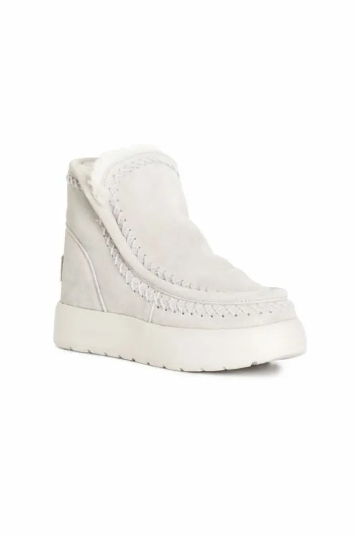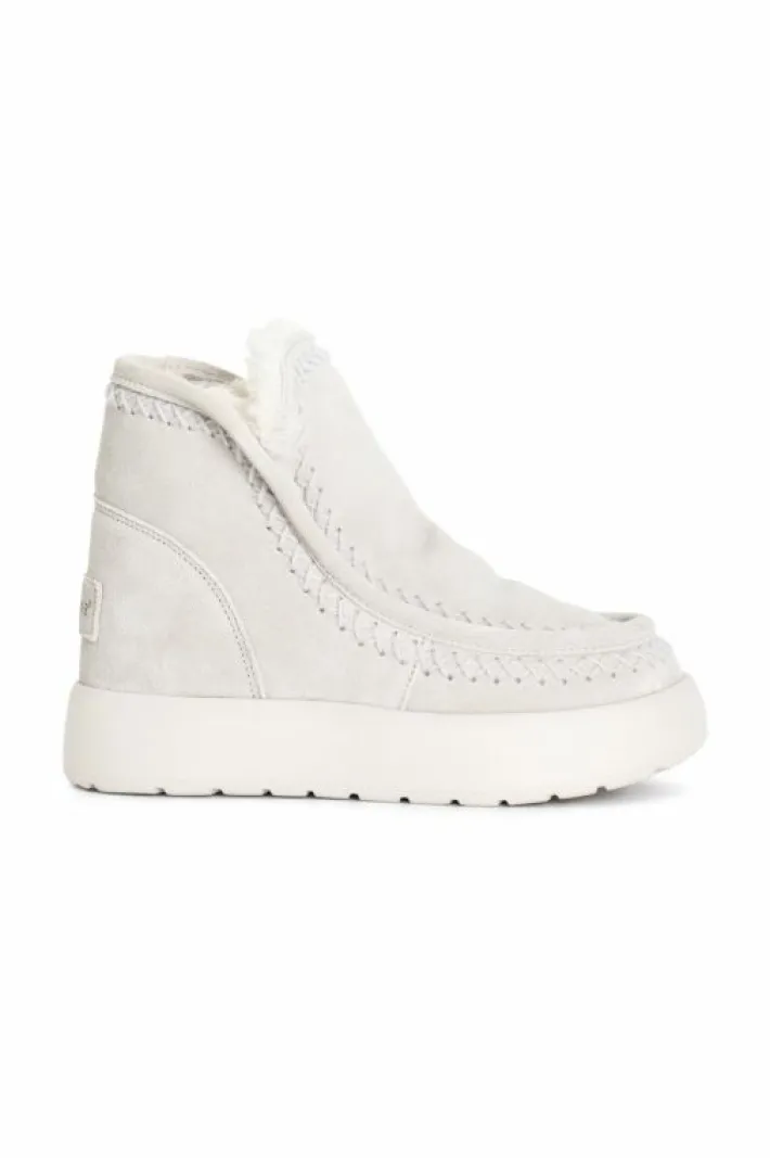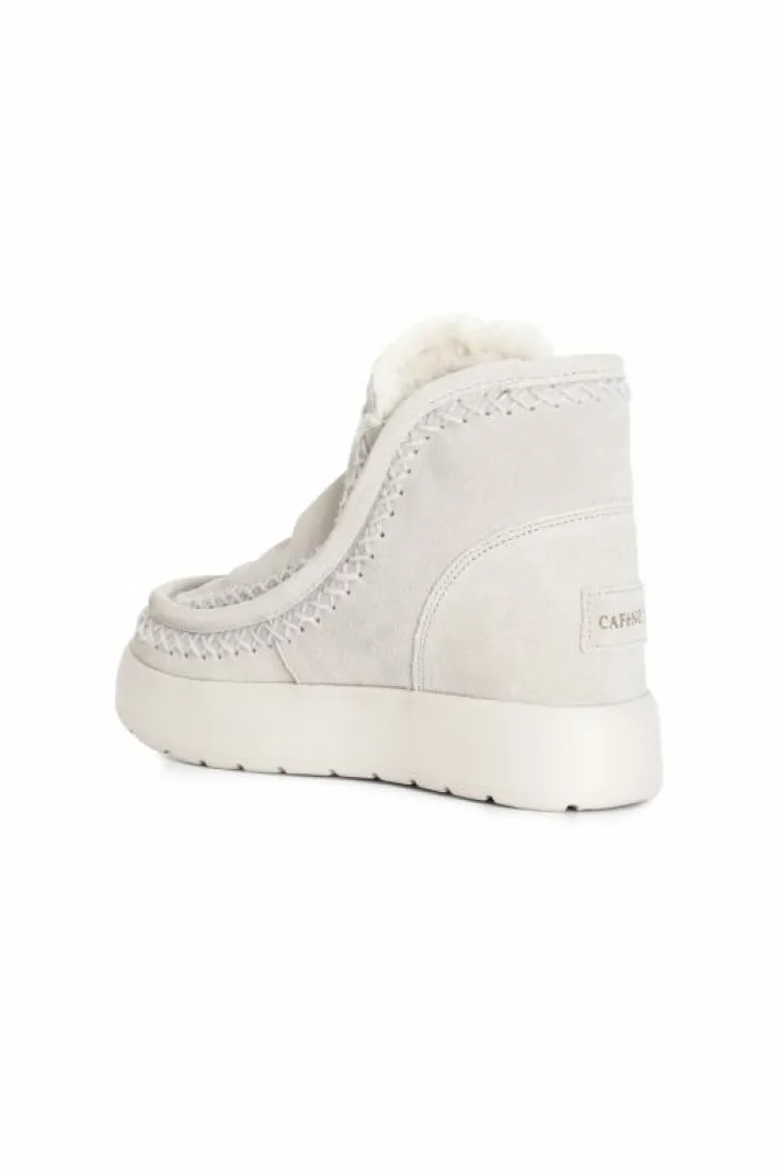 Tronchetto da donna con suola rialzata. tomaia in pelle scamosciata e fodera in pelliccia sintetica.