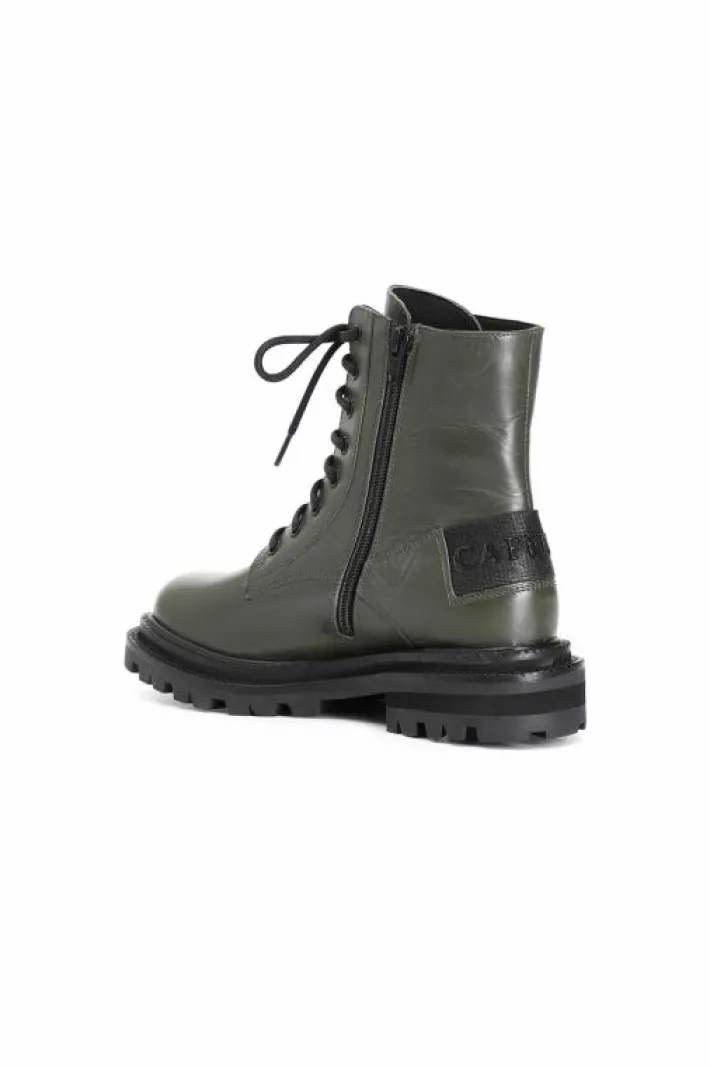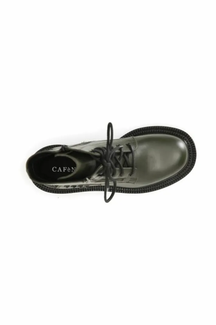 Tronchetto donna allacciato in pelle arricchito sia da una cerniera in metallo da borchie e da un particolare nastro logato cafènoir. il soletto è in pelle.