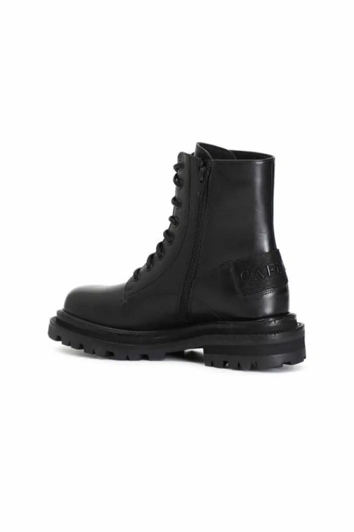 Tronchetto donna allacciato in pelle arricchito sia da una cerniera in metallo da borchie e da un particolare nastro logato cafènoir. il soletto è in pelle.