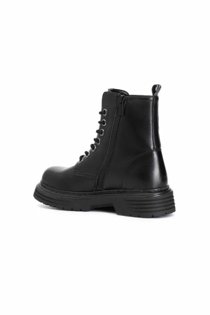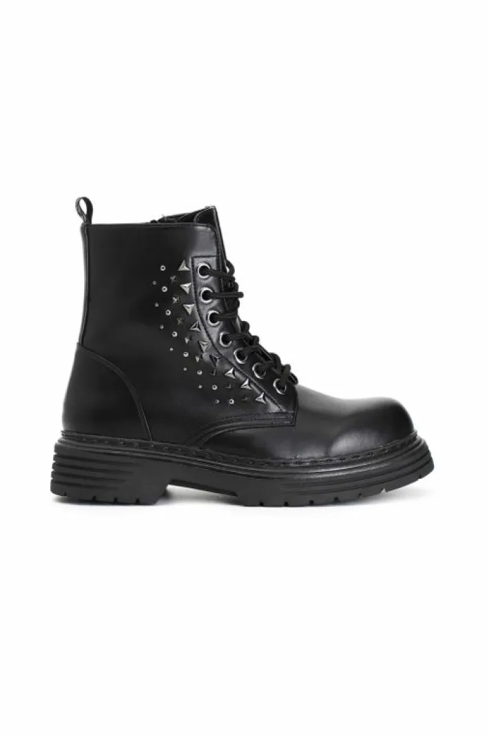 Tronchetto donna allacciato in similpelle arricchito da borchie di tendenza.